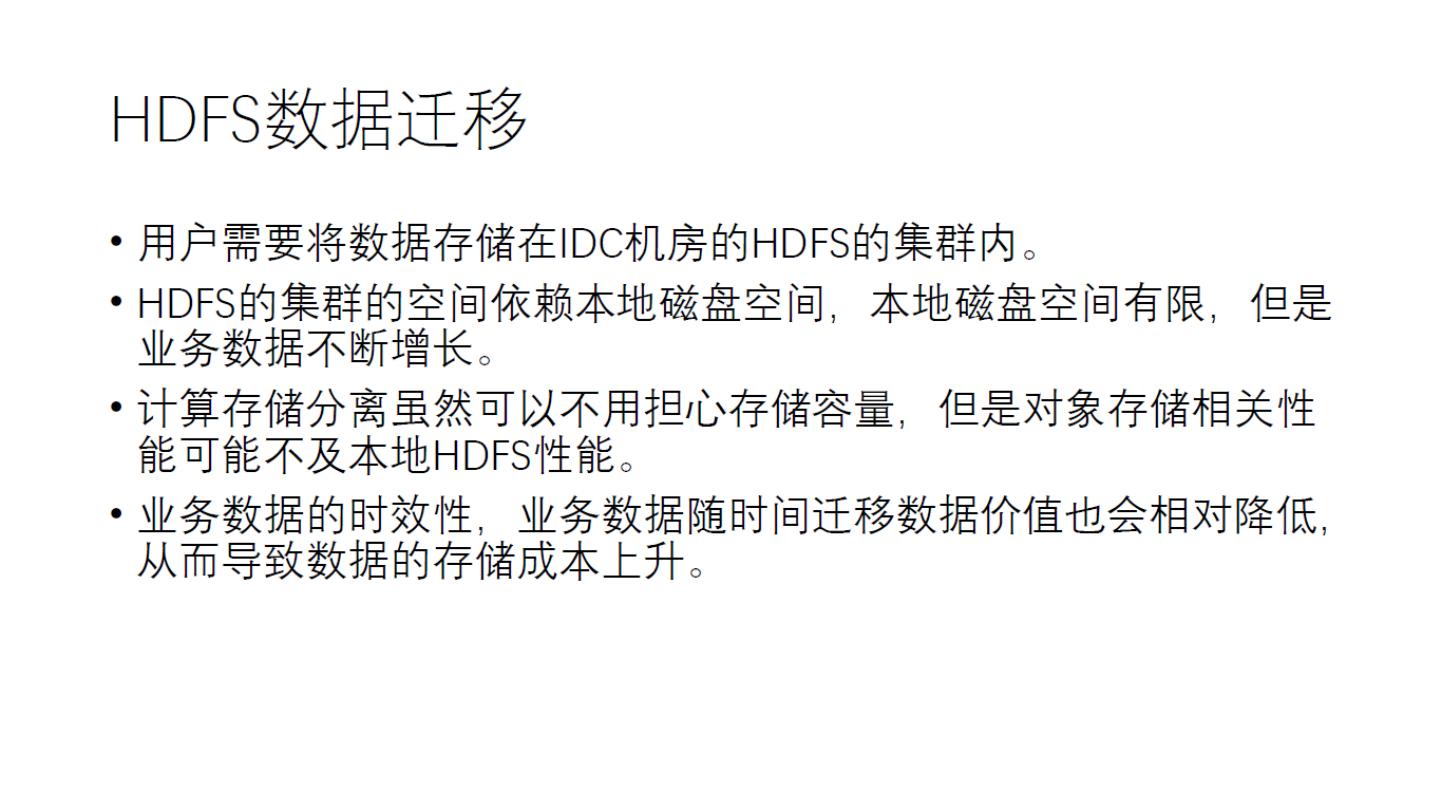 15 .存储分层架构 • 计算资源动态伸缩 • 存储资源使用云存储作为HDFS的替代或补充 • 相比存算分离架构,对于已有 HDFS 数据比较平滑,可以逐渐过 渡到存算分离架构 存算分离 存储分层