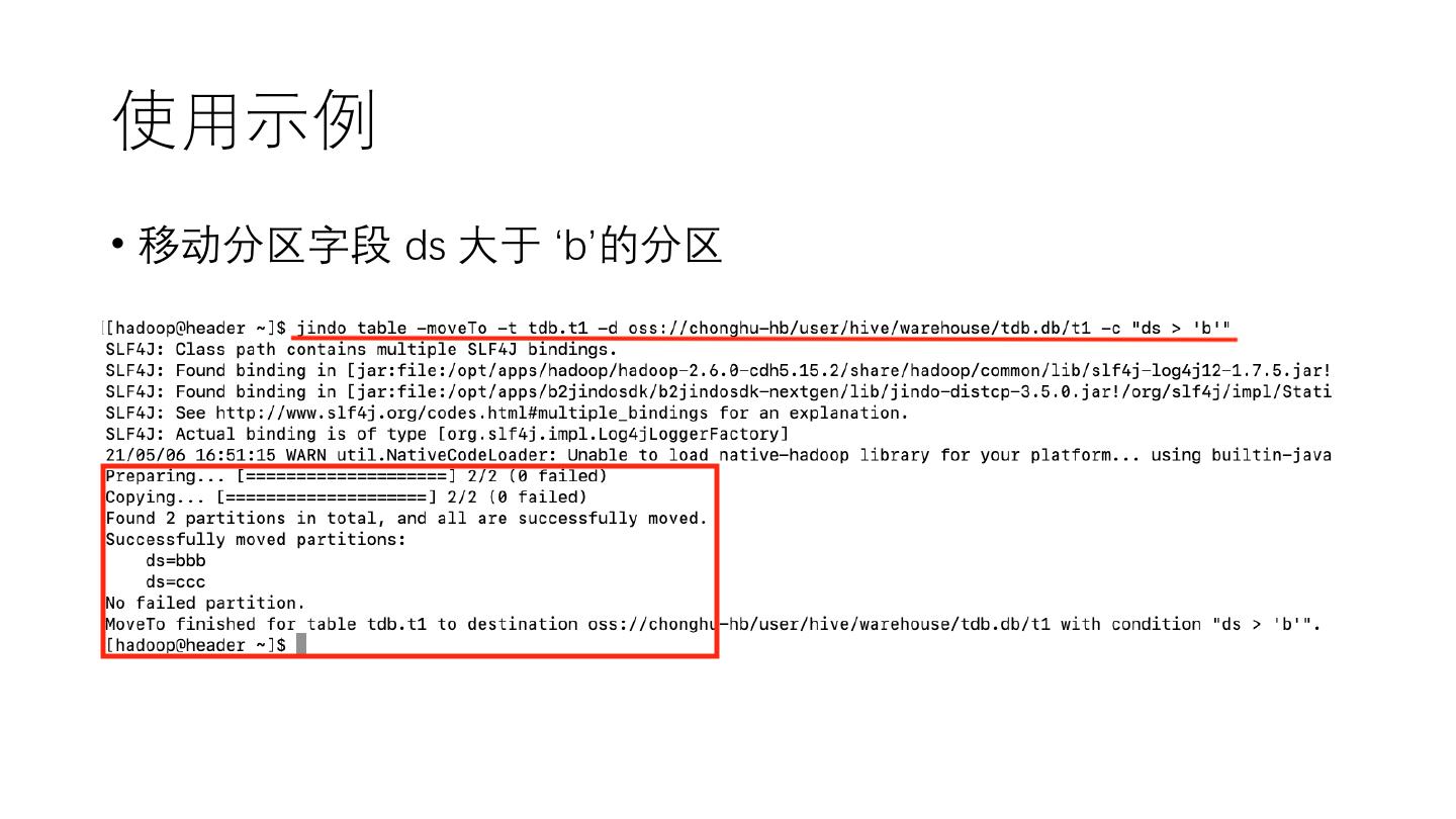 22 .使用示例 • 移动分区字段 ds 大于 ‘b’的分区