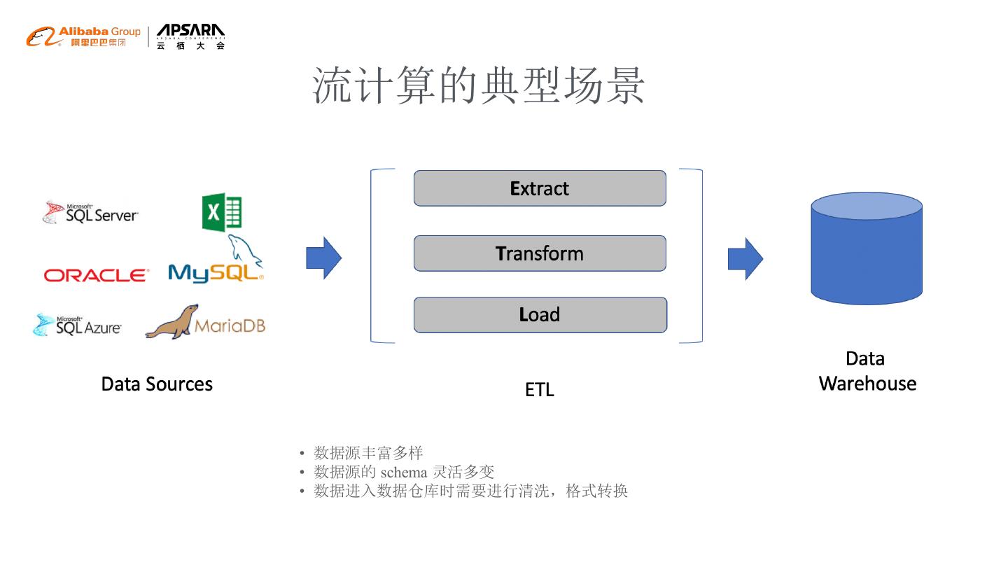 12 .流计算的典型场景 • 数据源丰富多样 • 数据源的 schema 灵活多变 • 数据进入数据仓库时需要进行清洗,格式转换