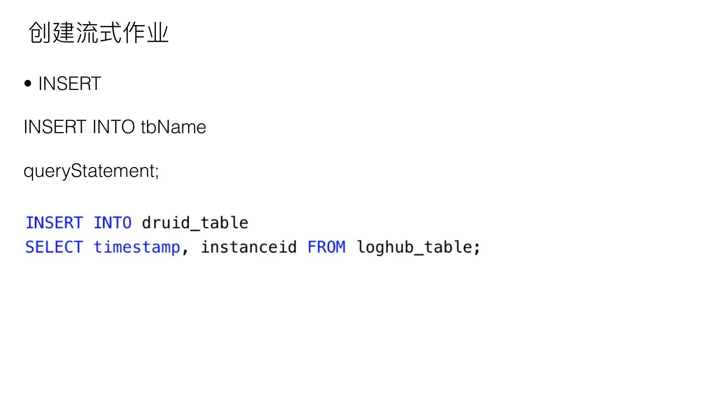 14 .创建流式作业 • INSERT INSERT INTO tbName queryStatement;