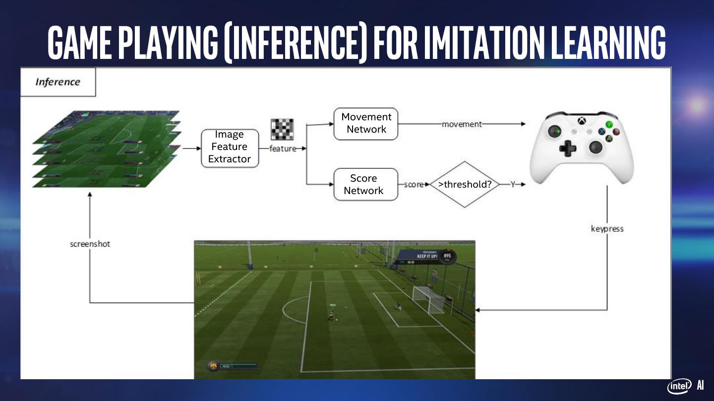 18 .Game Playing (Inference) for Imitation Learning Movement Image Network Feature Extractor Score >threshold? Network AI