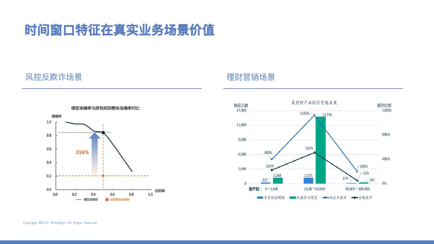 7 .时间窗口特征在真实业务场景价值 风控反欺诈场景 理财营销场景 Copyright ©2020 4Paradigm All Rights Reserved.