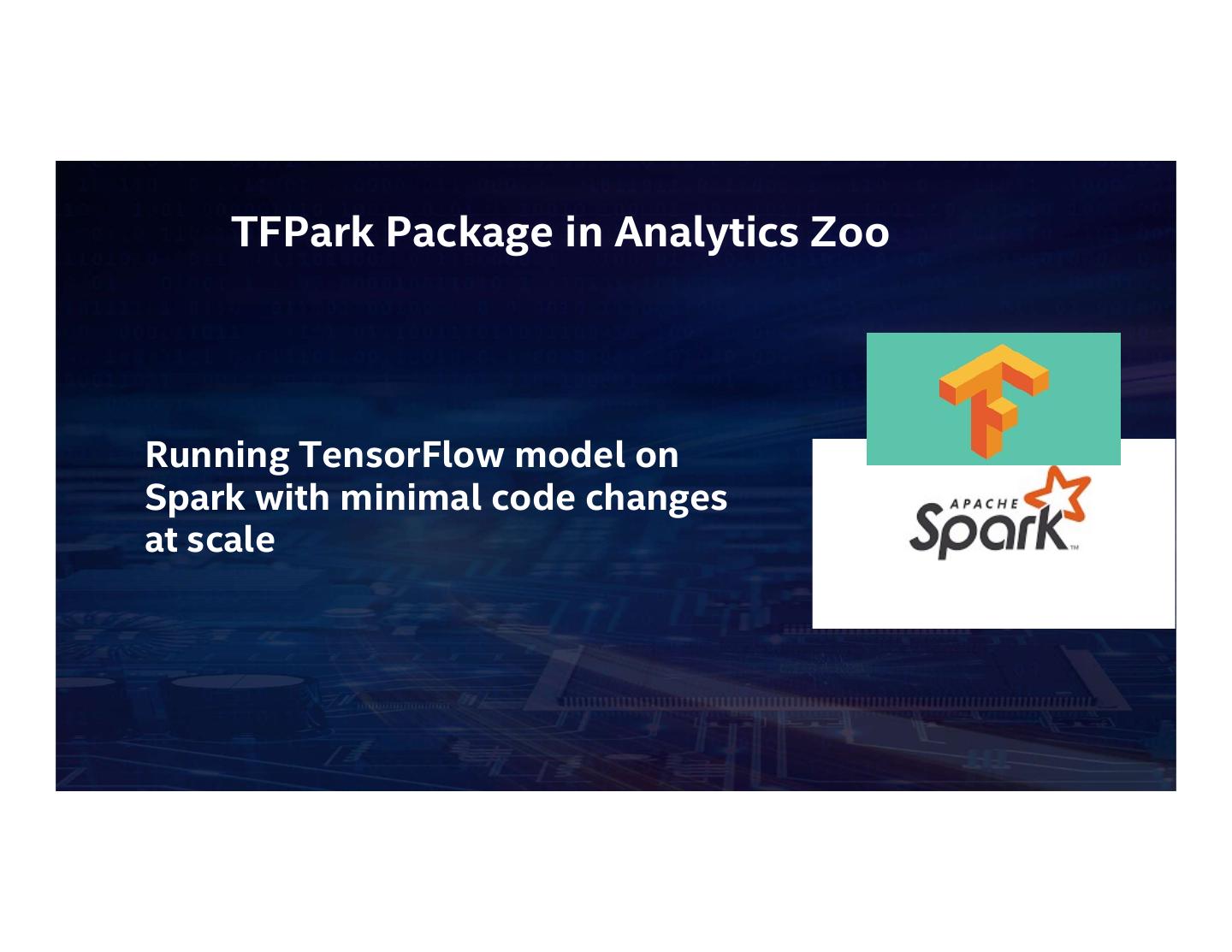 8 . TFPark Package in Analytics Zoo Running TensorFlow model on Spark with minimal code changes at scale