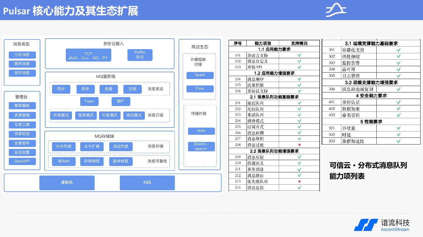 16 .Pulsar 核心能力及其生态扩展 可信云 · 分布式消息队列 能力项列表