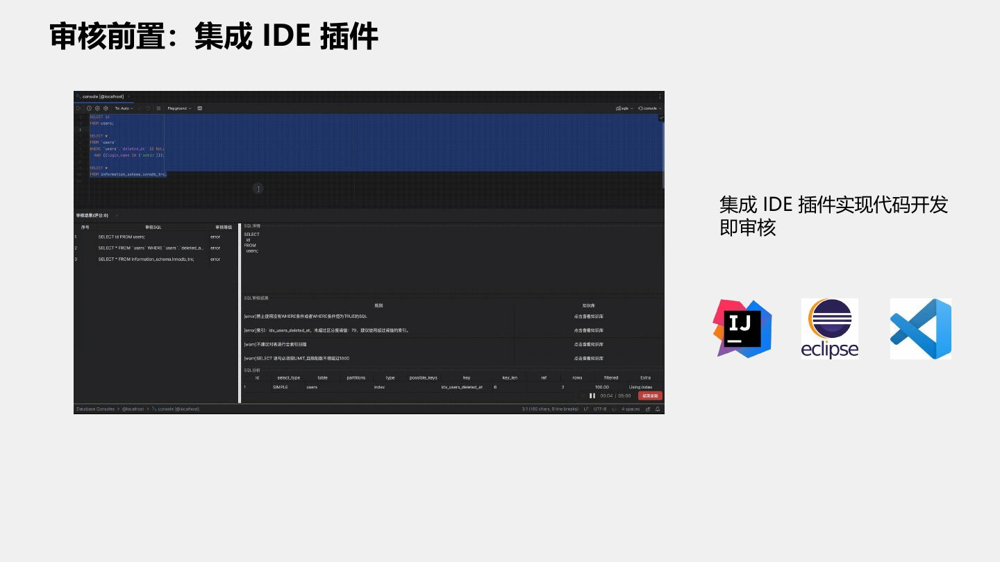 16 .审核前置:集成 IDE 插件 集成 IDE 插件实现代码开发 即审核