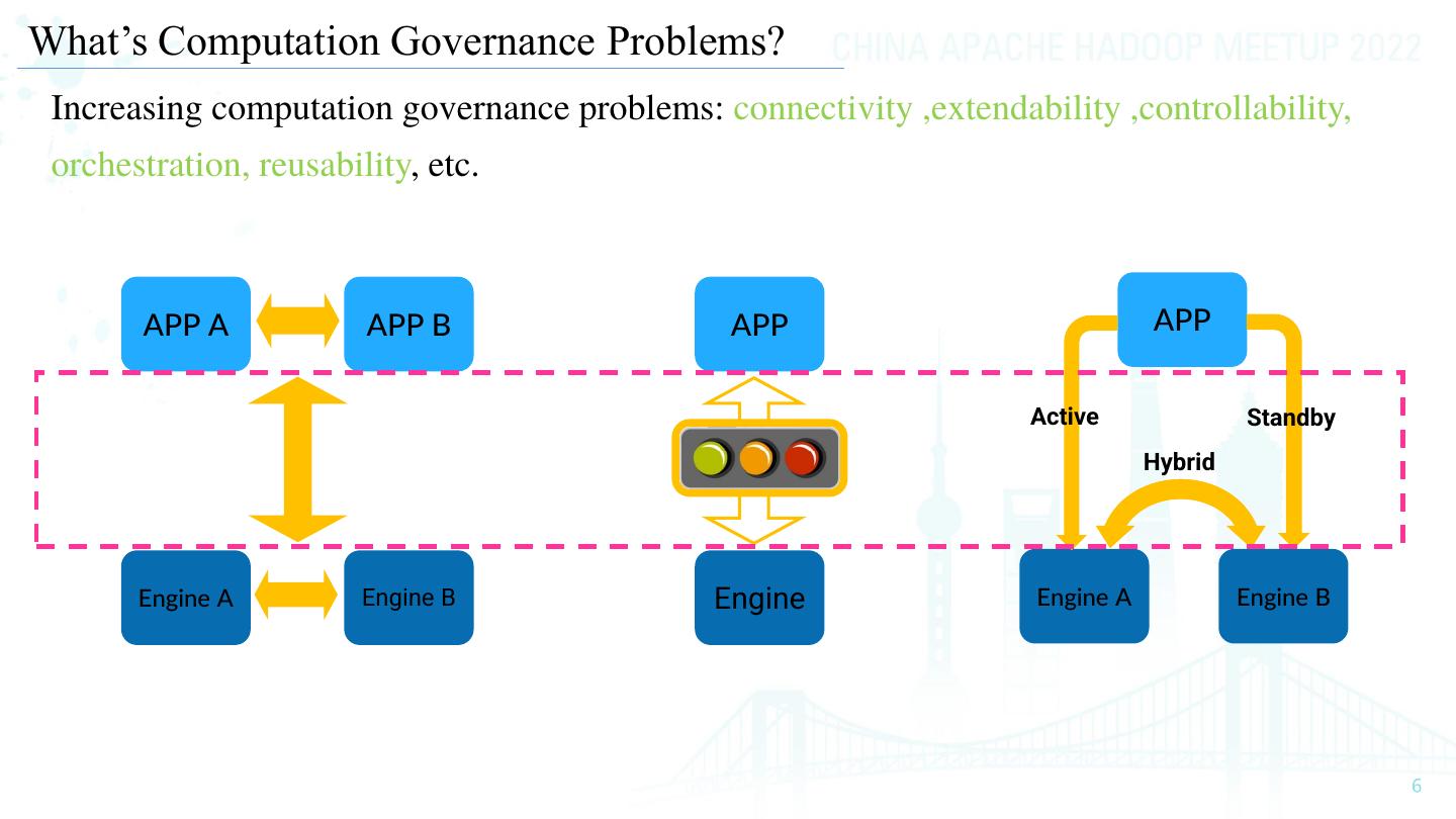 6 .What’s Computation Governance Problems? Increasing computation governance problems: connectivity ,extendability ,controllability, orchestration, reusability, etc. APP A APP B APP APP Active Standby ① Hybrid Engine A Engine B Engine Engine A Engine B
