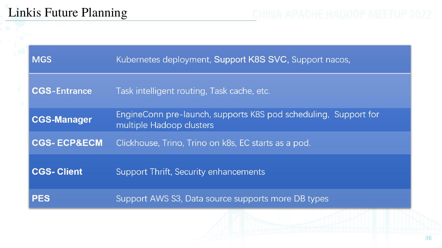 21 .Linkis Computation Governance Solution-Operation • Multi-tenant, label-based multilevel fine-grained resource control. • Multilevel parameter configuration. Tenant→User → App/Tool → EC Type → EC App/Tool Level Configuration EC Type Level->EC Configuration User Level Configuration