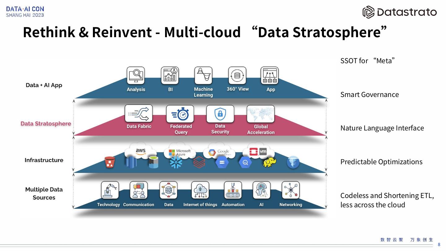 8 .Rethink & Reinvent - Multi-cloud “Data Stratosphere” SSOT for “Meta” Smart Governance Nature Language Interface Predictable Optimizations Codeless and Shortening ETL, less across the cloud 8
