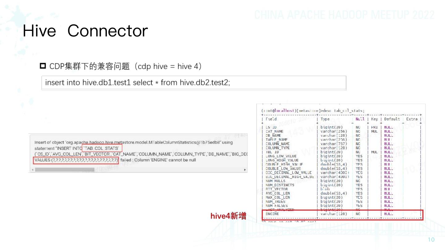 9 .Hive Connector 问题一:hive version4(CDP版本)下的Connector写兼容问题 9