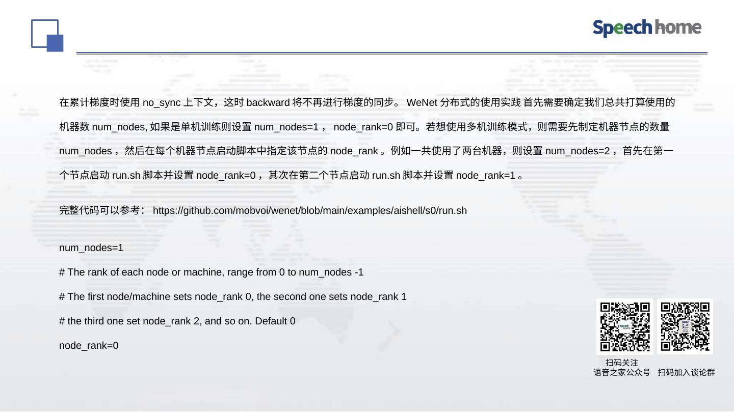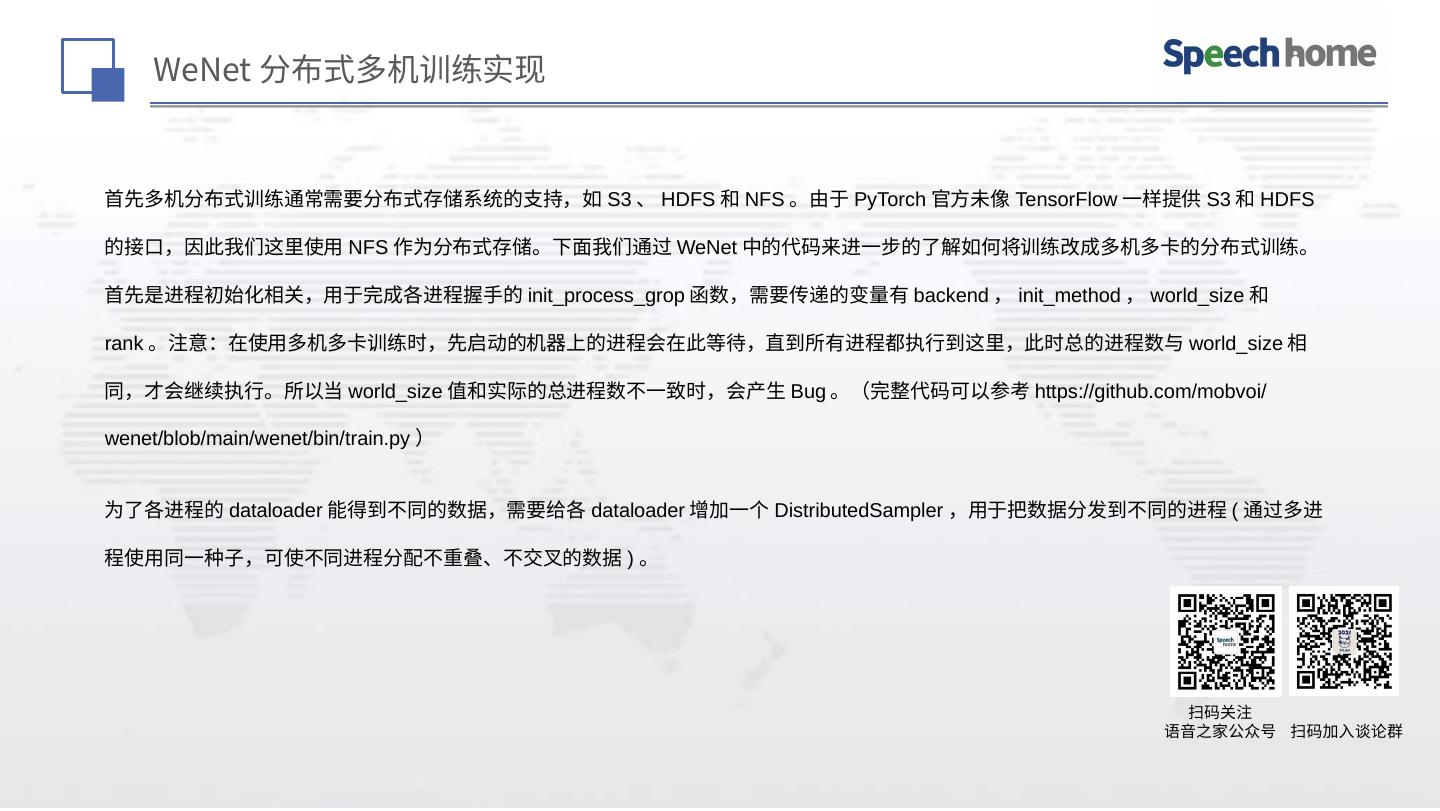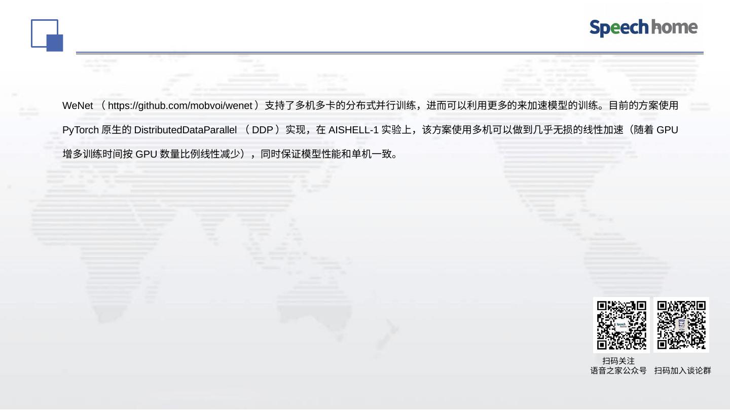 WeNet(https://github.com/mobvoi/wenet)支持了多机多卡的分布式并行训练,进而可以利用更多的来加速模型的训练。