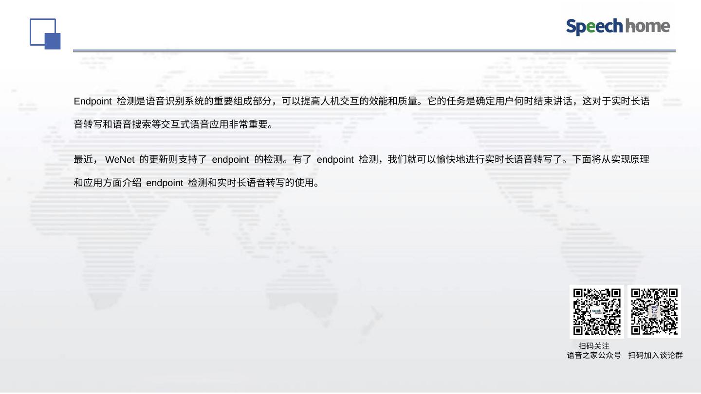 Endpoint 检测是语音识别系统的重要组成部分,可以提高人机交互的效能和质量。它的任务是确定用户何时结束讲话,这对于实时长语音转写和语音搜索等交互式语音应用非常重要。