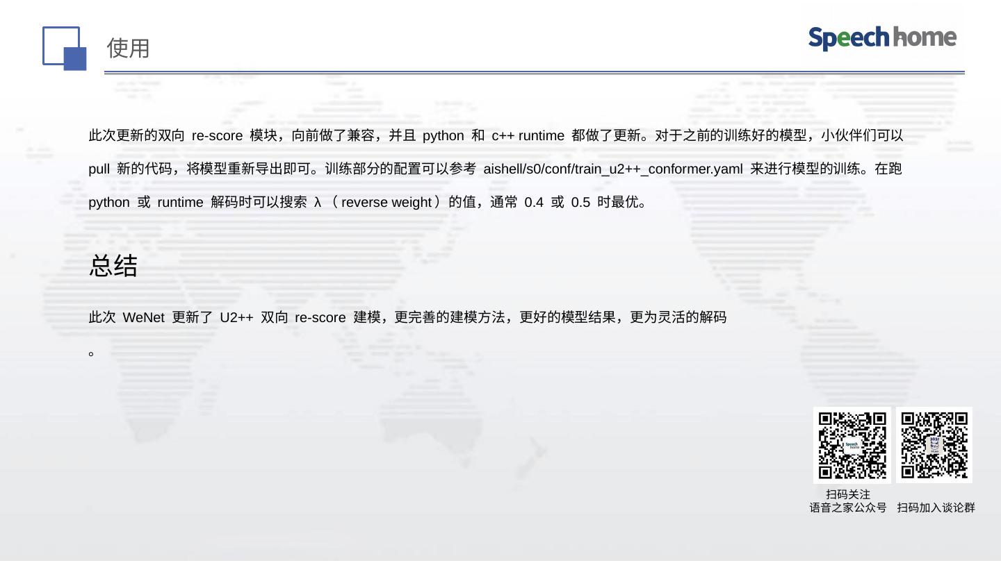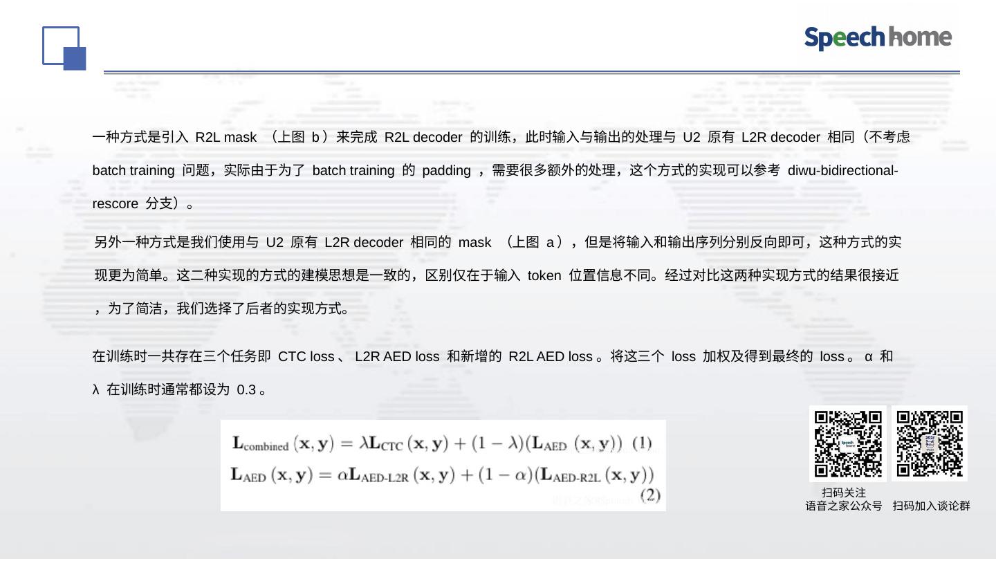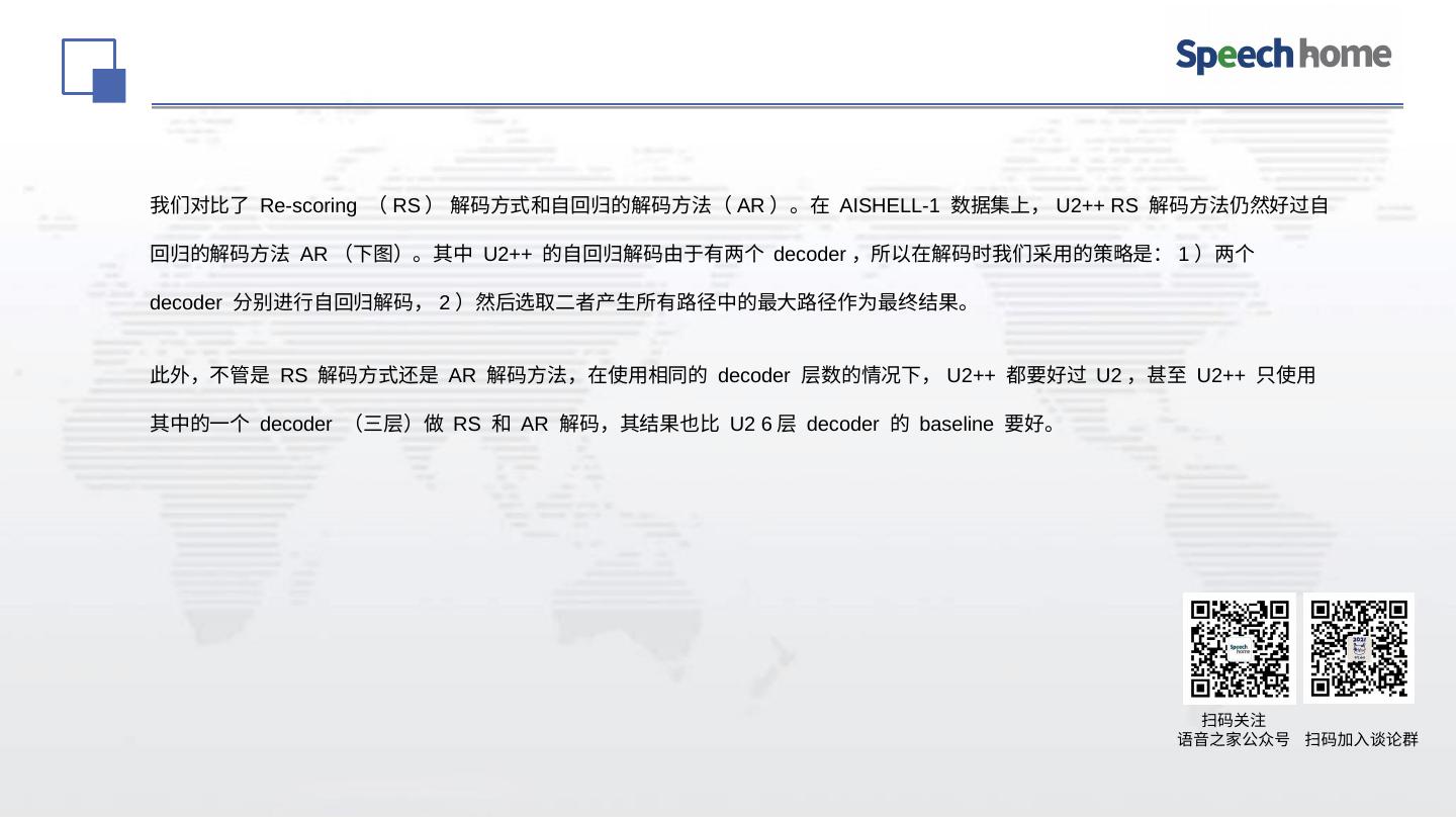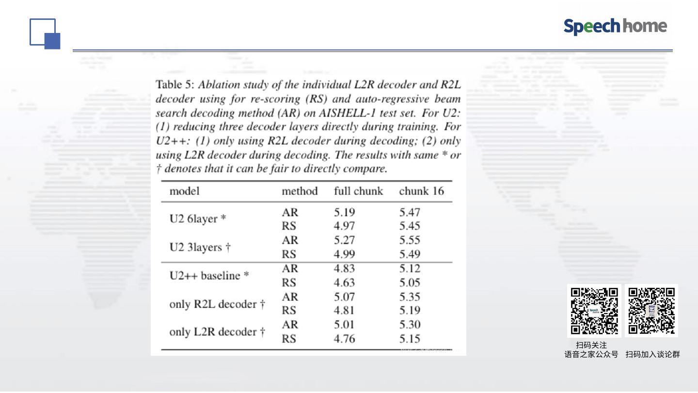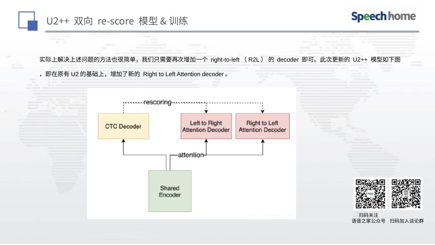 这次 WeNet 带来的更新是 U2++ 双向建模,其核心思想是同时利用标注序列的前向和后向信息训练模型,在解码时同时利用双向的 decoder 进行 re-score。实验证明,该方法在各个数据集上都能取得一致性的5%~8%的相对错误率的下降。
