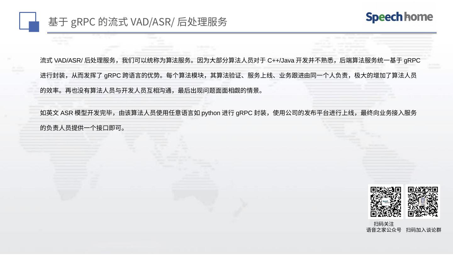 喜马拉雅语音团队在wenet中增加了基于gRPC的流式语音识别的支持。本文将介绍wenet中的gRPC的设计和实现,并介绍喜马拉雅基于wenet和gRPC的语音识别微服务架构实践。