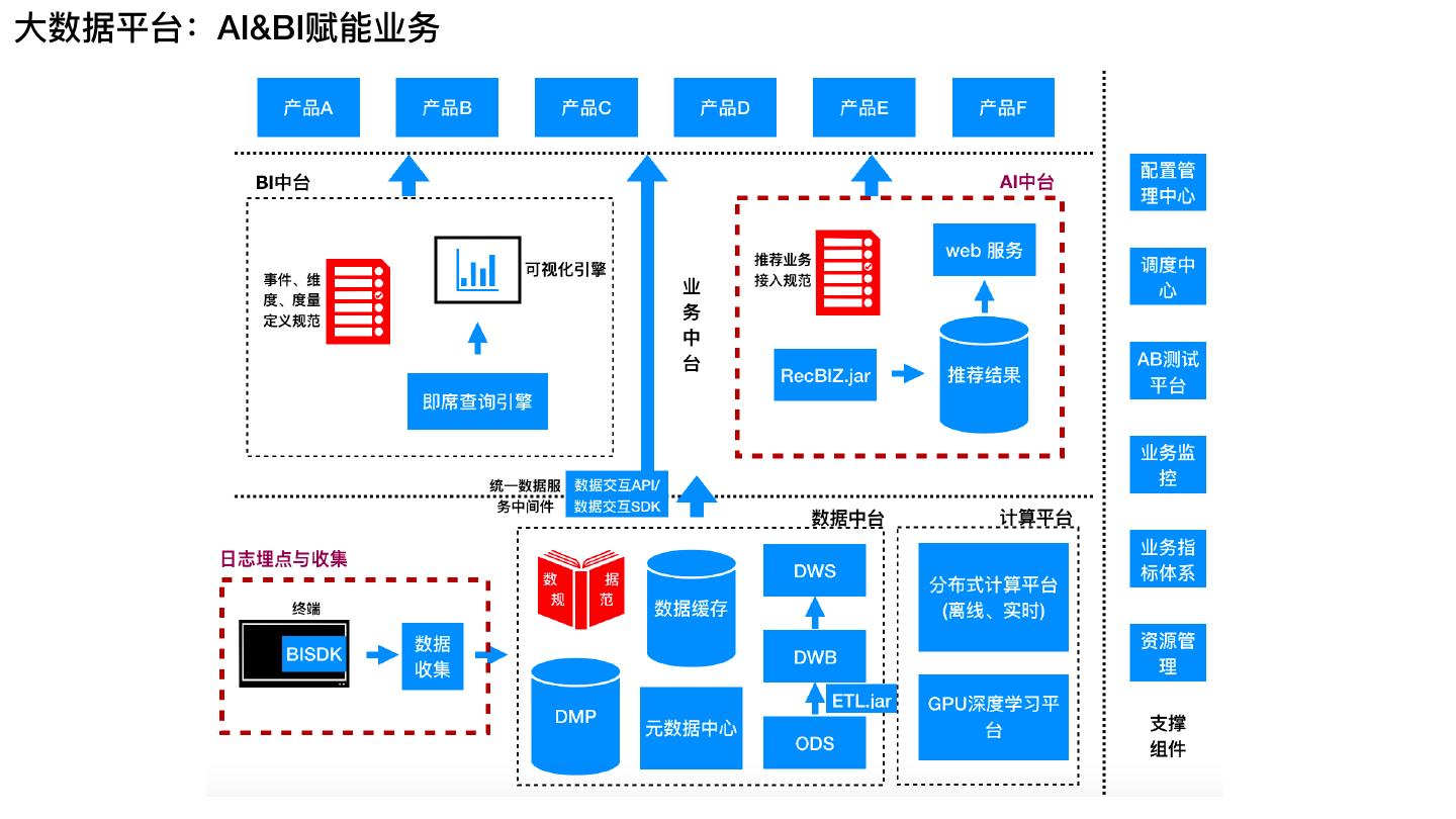 9 .⼤大数据平台:提供基于数据流的端到端解决⽅方案 ⽇日志格式定 义 元数据中⼼心 通⽤用化 ⽇日志打点 ⾃自动化 数据分析 数据可视 模块化 搜索&推荐 ⽤用户画像 挖掘 化 解耦合 打点SDK ⽇日志收集 调度平台 计算平台 ⽇日志预处理理 系统 ETL平台 元数据中⼼心 数仓 数据预处理理 构建数据模型