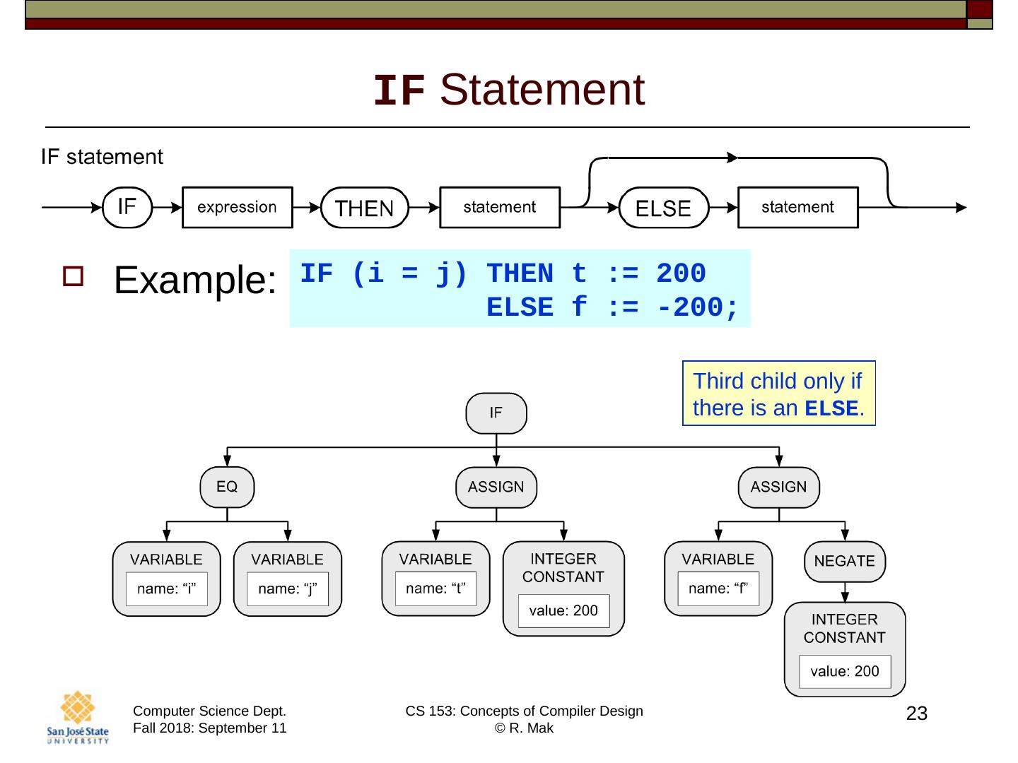 23 .23 IF Statement Example: Third child only if there is an ELSE . IF ( i = j) THEN t := 200 ELSE f := -200;