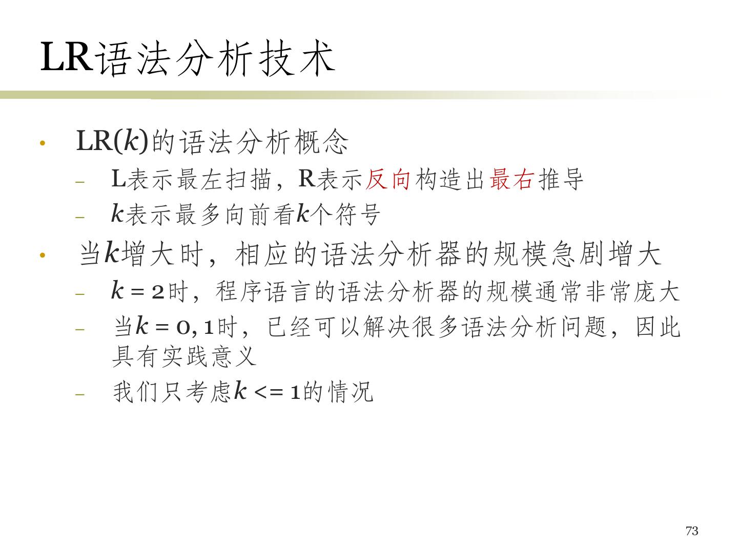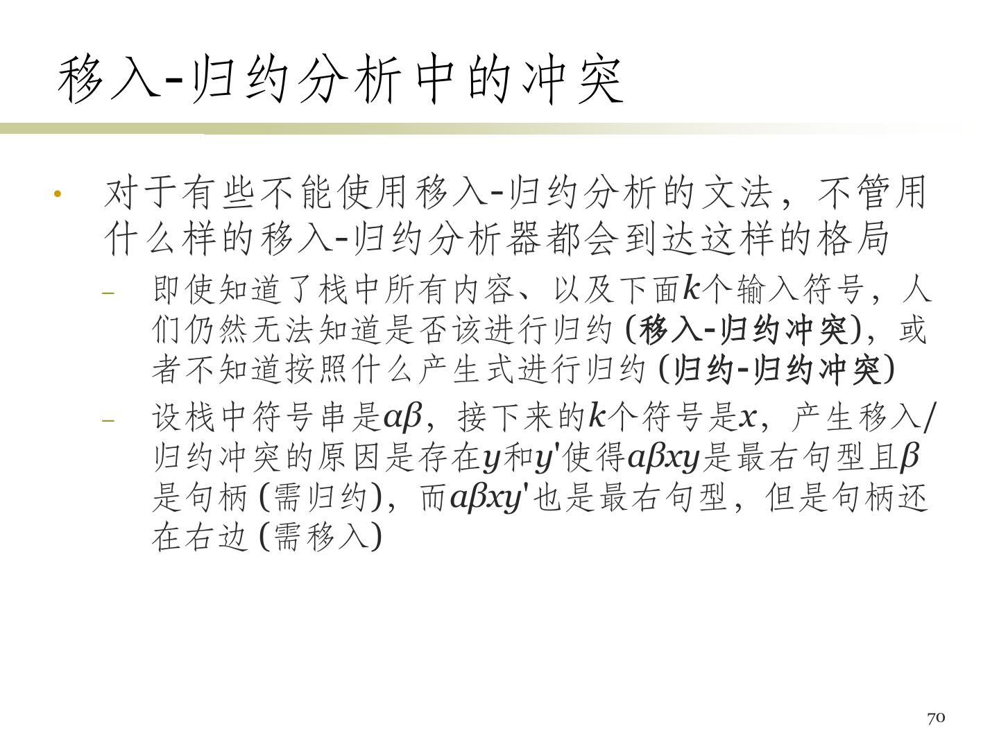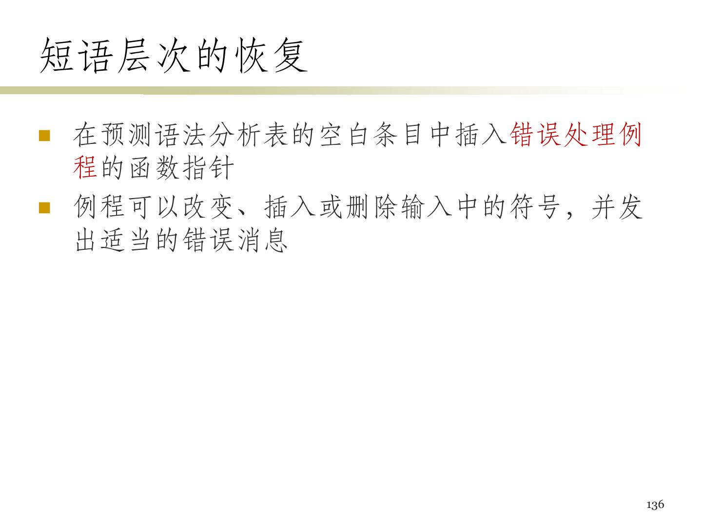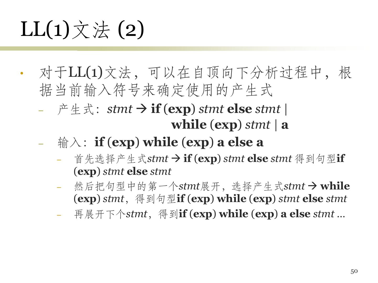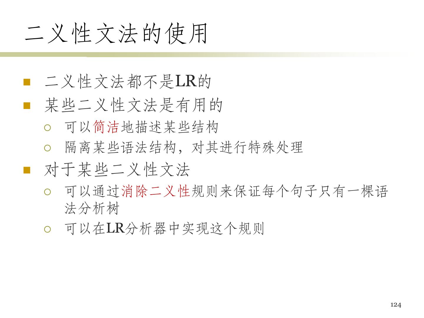 25 .二义性的消除 (2) • 保证else和最近未匹配的then匹配 • 要求在then和 else之间出现的语句必须是匹配好的 • 引入matched_stmt表示匹配好的语句 stmt matched_stmt | open_stmt matched_stmt if expr then matched_stmt else matched_stmt | other open_stmt if expr then stmt | if expr then matched_stmt else open_stmt • 二义性的消除方法没有规律可循 27