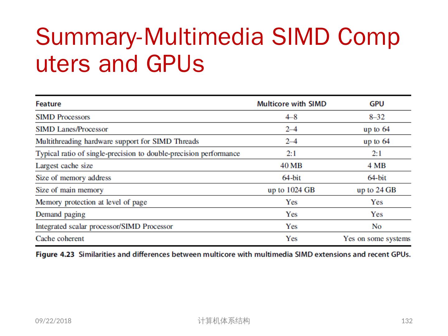 5 .SIMD Parallelism 向量体系结构 多媒体 SIMD 指令集 扩展 Graphics Processor Units (GPUs) For x86 processors: 每年增加 2cores/chip SIMD 宽度每 4 年翻一番 SIMD 潜在加速比是 MIMD 的 2 倍 2018/5/23 计算机体系结构 5