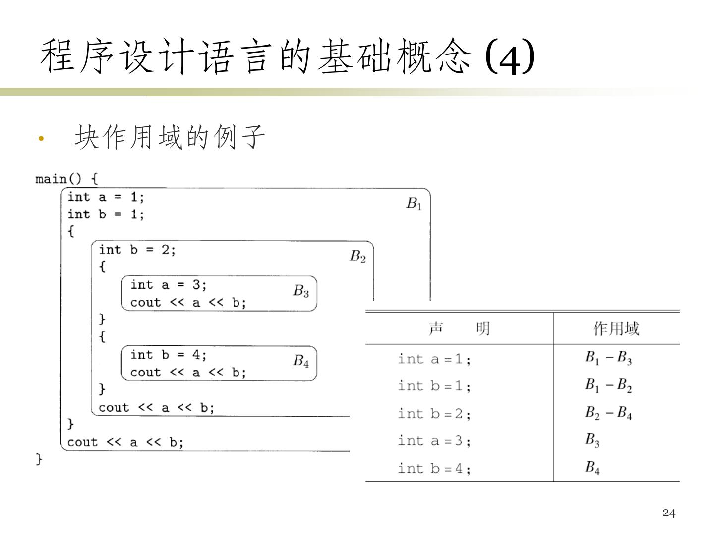 23 .程序设计语言的基础概念 (4) • 块作用域的例子 24