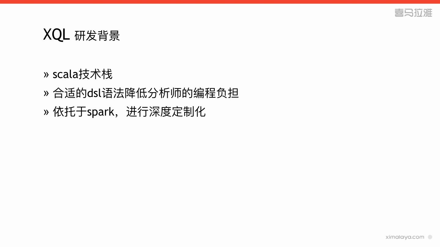 7 .XQL 研发背景 » scala技术栈 » 合适的dsl语法降低分析师的编程负担 » 依托于spark,进⾏行行深度定制化