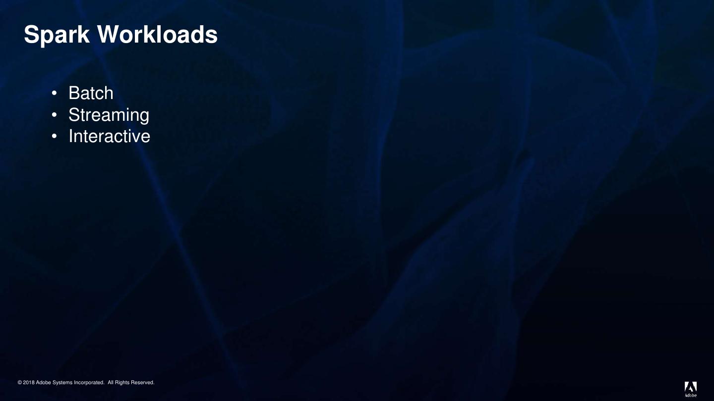 7 . Spark Workloads • Batch • Streaming • Interactive © 2018 Adobe Systems Incorporated. All Rights Reserved.