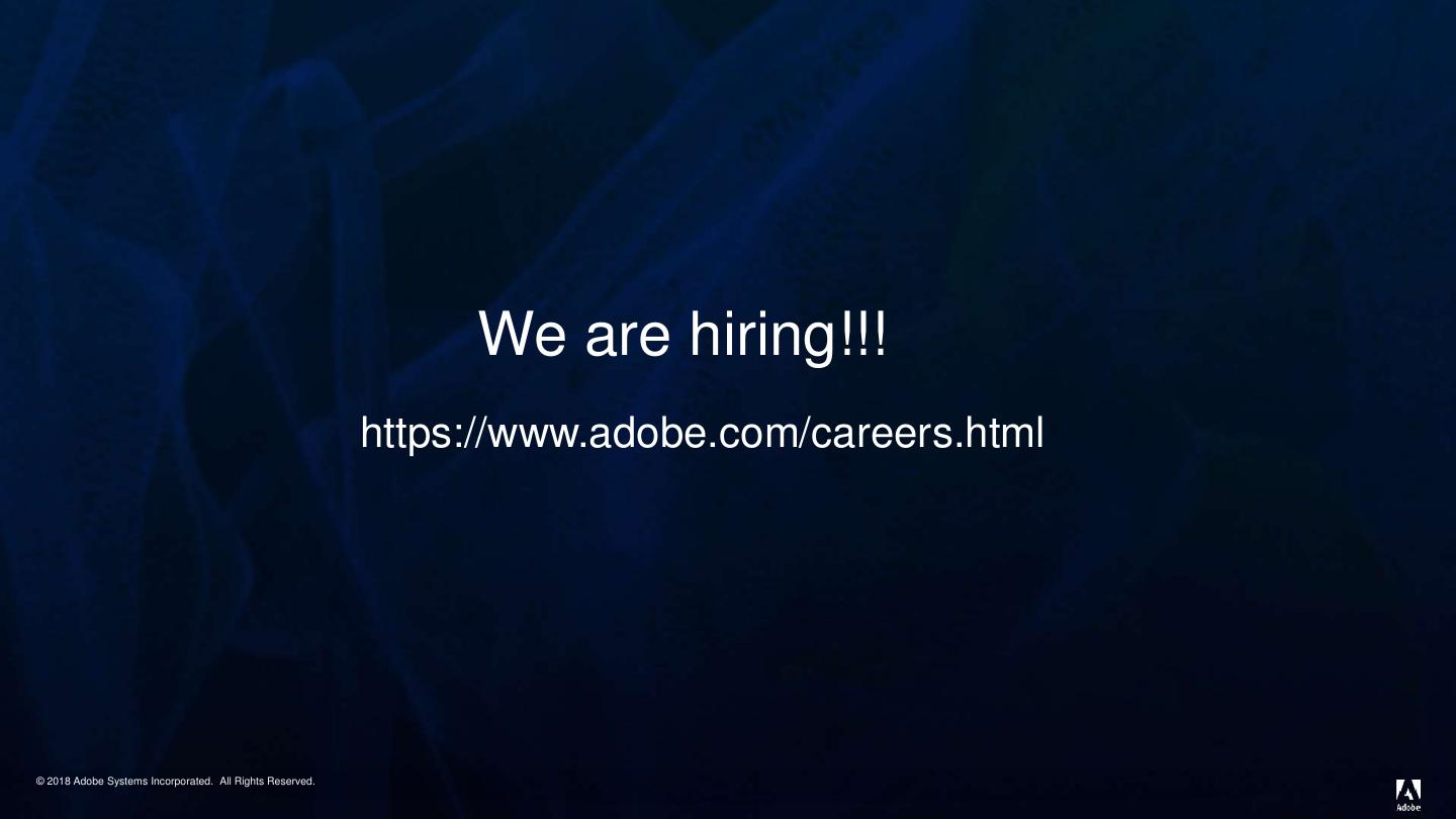27 . We are hiring!!! https://www.adobe.com/careers.html © 2018 Adobe Systems Incorporated. All Rights Reserved.