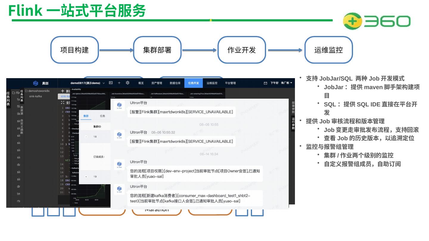 Ultron是360商业化大数据架构团队基于FlinkSQL构建的实时数仓平台,以FlinkSQL为基础,集项目构建、集群部署、资产管理、数仓建模、任务开发、上线发布、运维监控等功能于一身,提供一站式实时数仓解决方案。面向数仓化设计,利用FlinkSQL,将所有资产抽象为表,构建数仓体系,与离线Hive数仓融合,探索批流合一的新数仓架构。