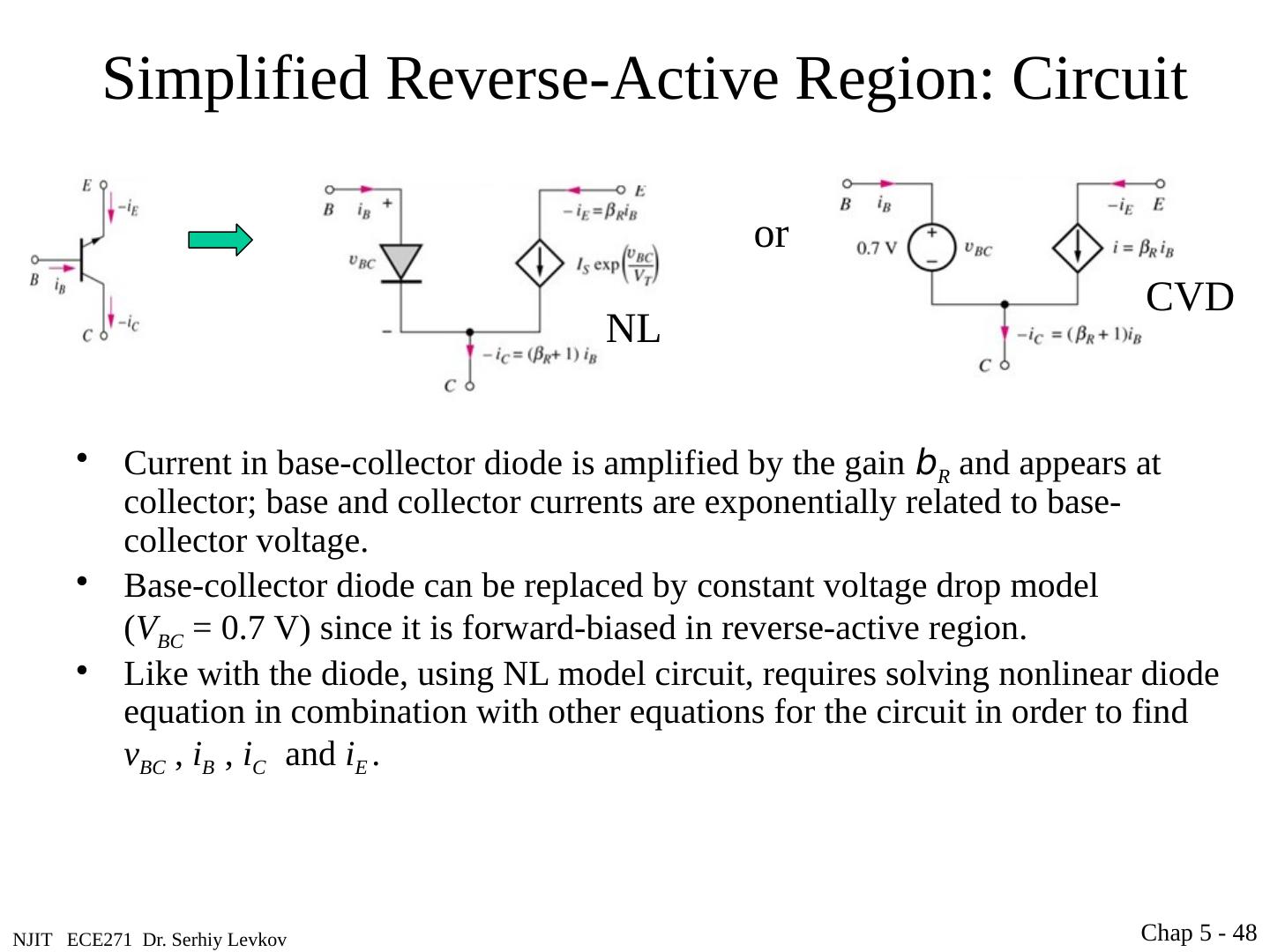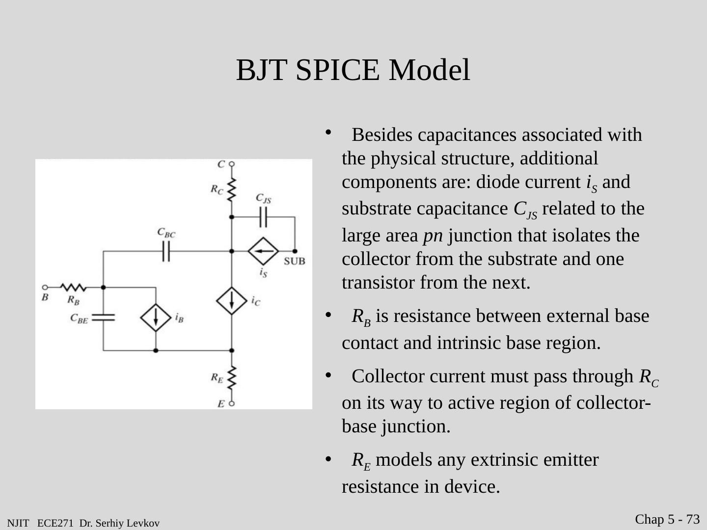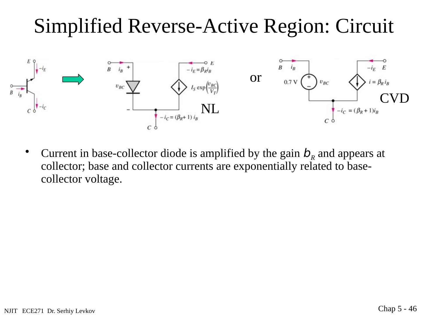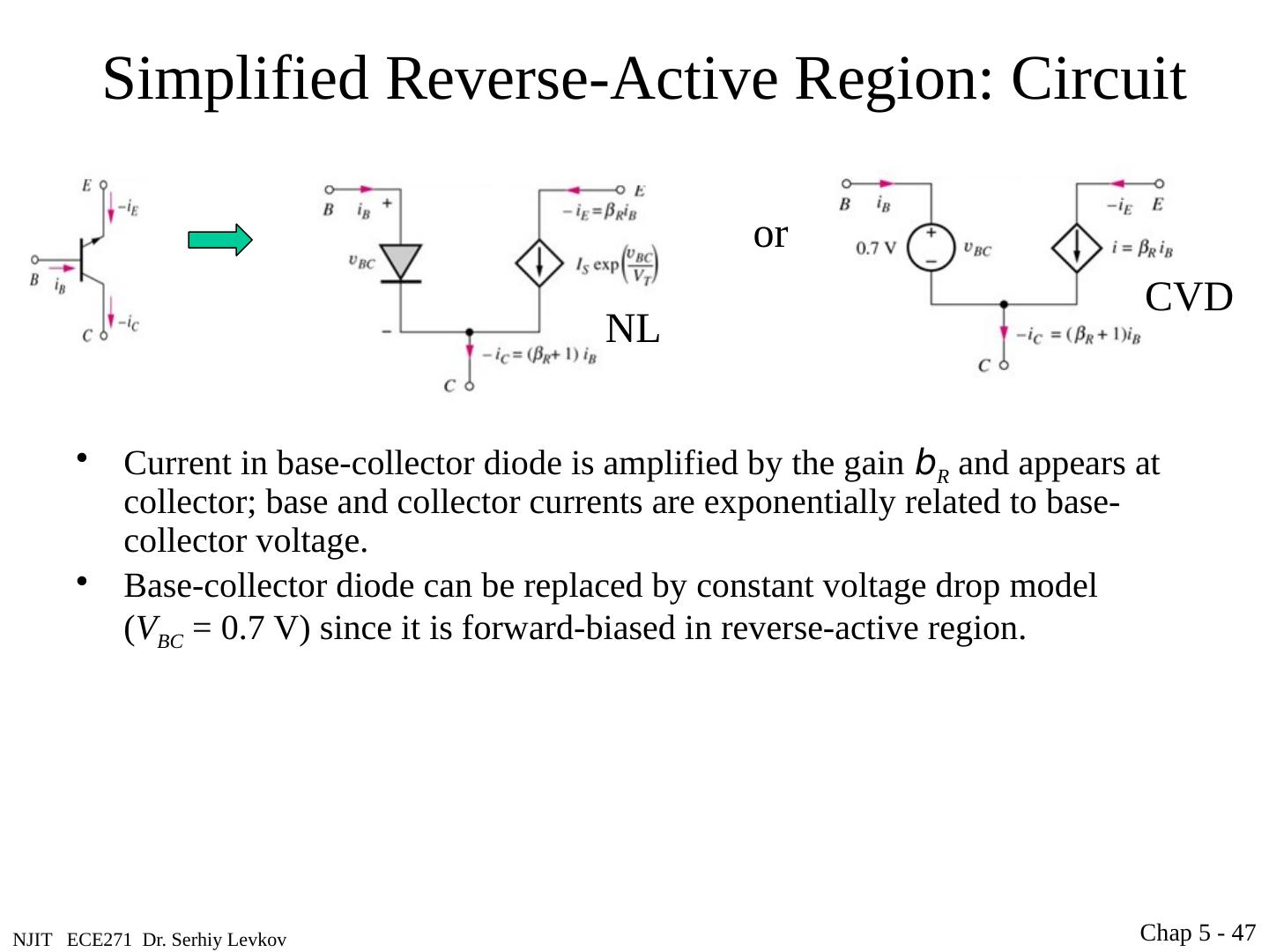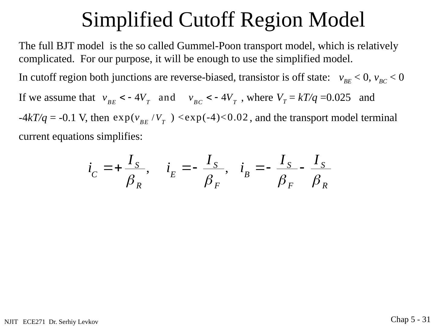 19 .NJIT ECE271 Dr. Serhiy Levkov npn Transistor Model: Reverse Characteristics Reverse transport current is Base current is given by Chap 5 - 19 is reverse common-emitter current gain
