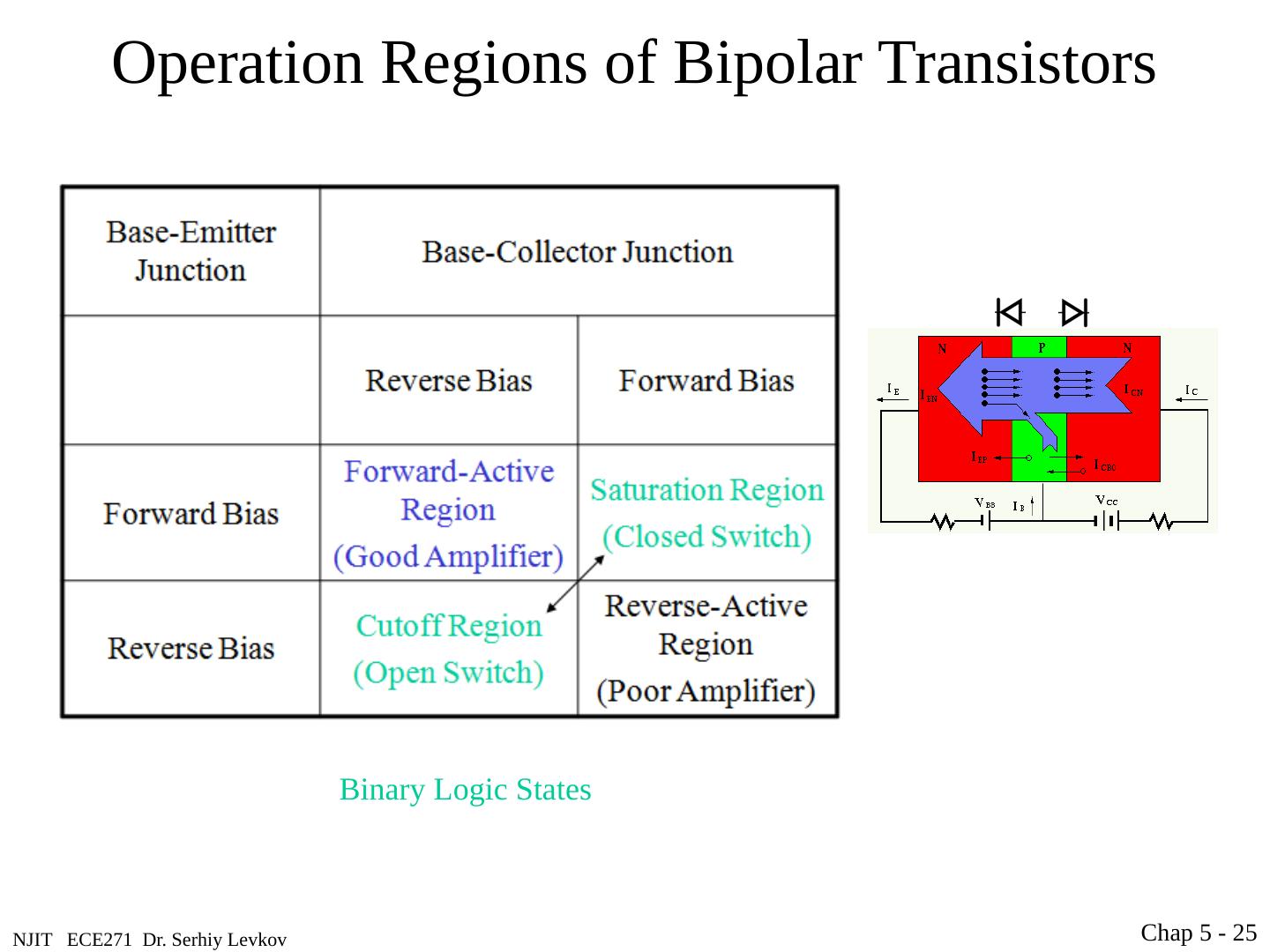 25 .NJIT ECE271 Dr. Serhiy Levkov Operation Regions of Bipolar Transistors Chap 5 - 25 Binary Logic States