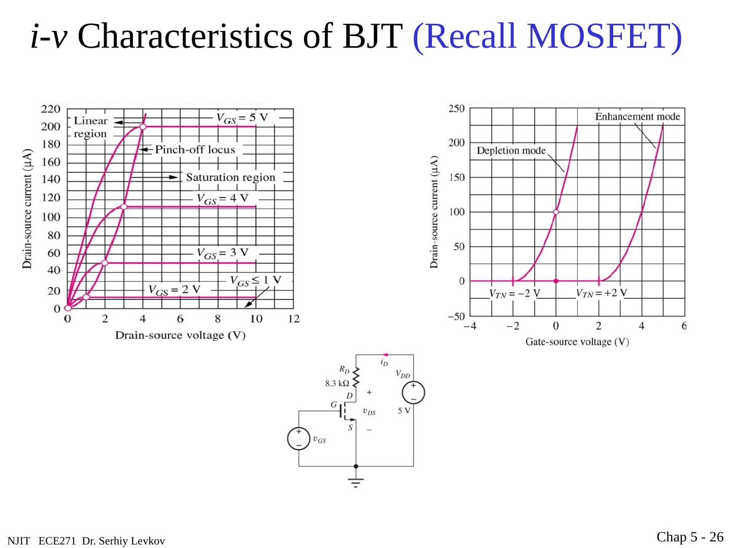 26 .NJIT ECE271 Dr. Serhiy Levkov i-v Characteristics of BJT (Recall MOSFET) Chap 5 - 26