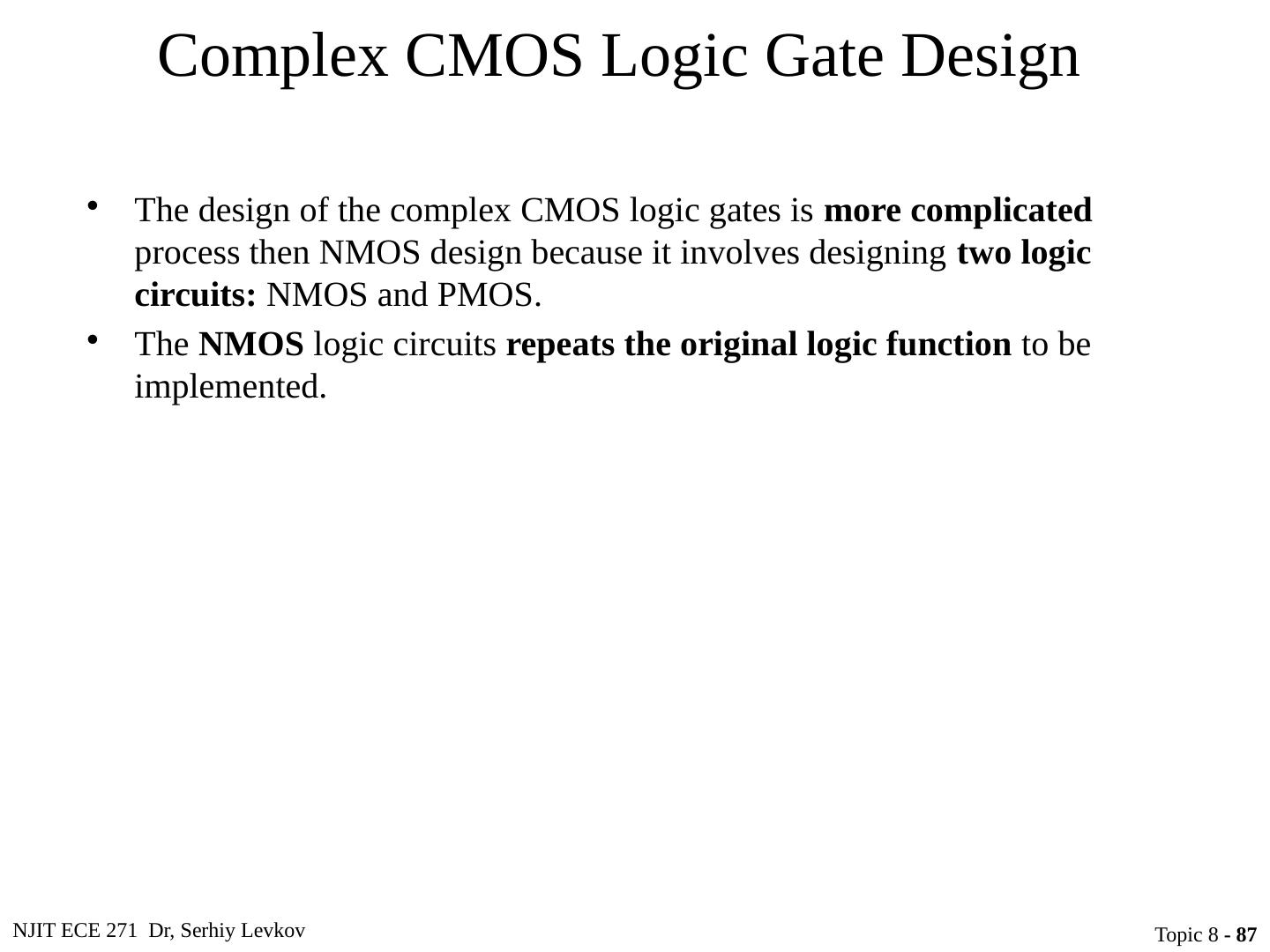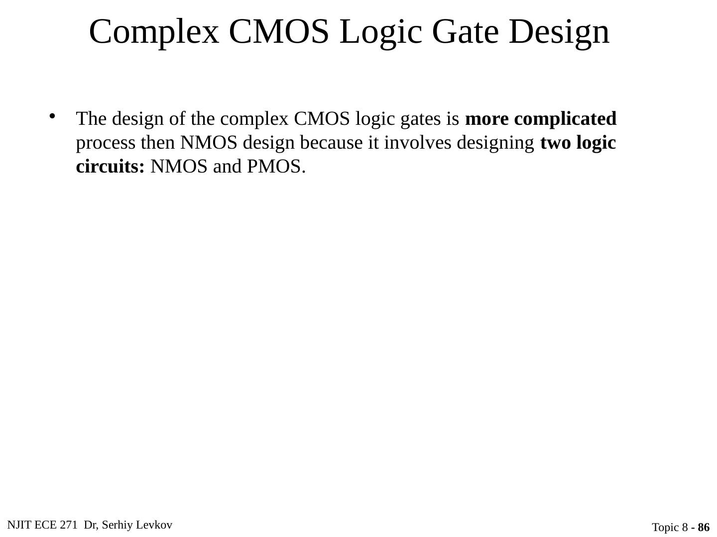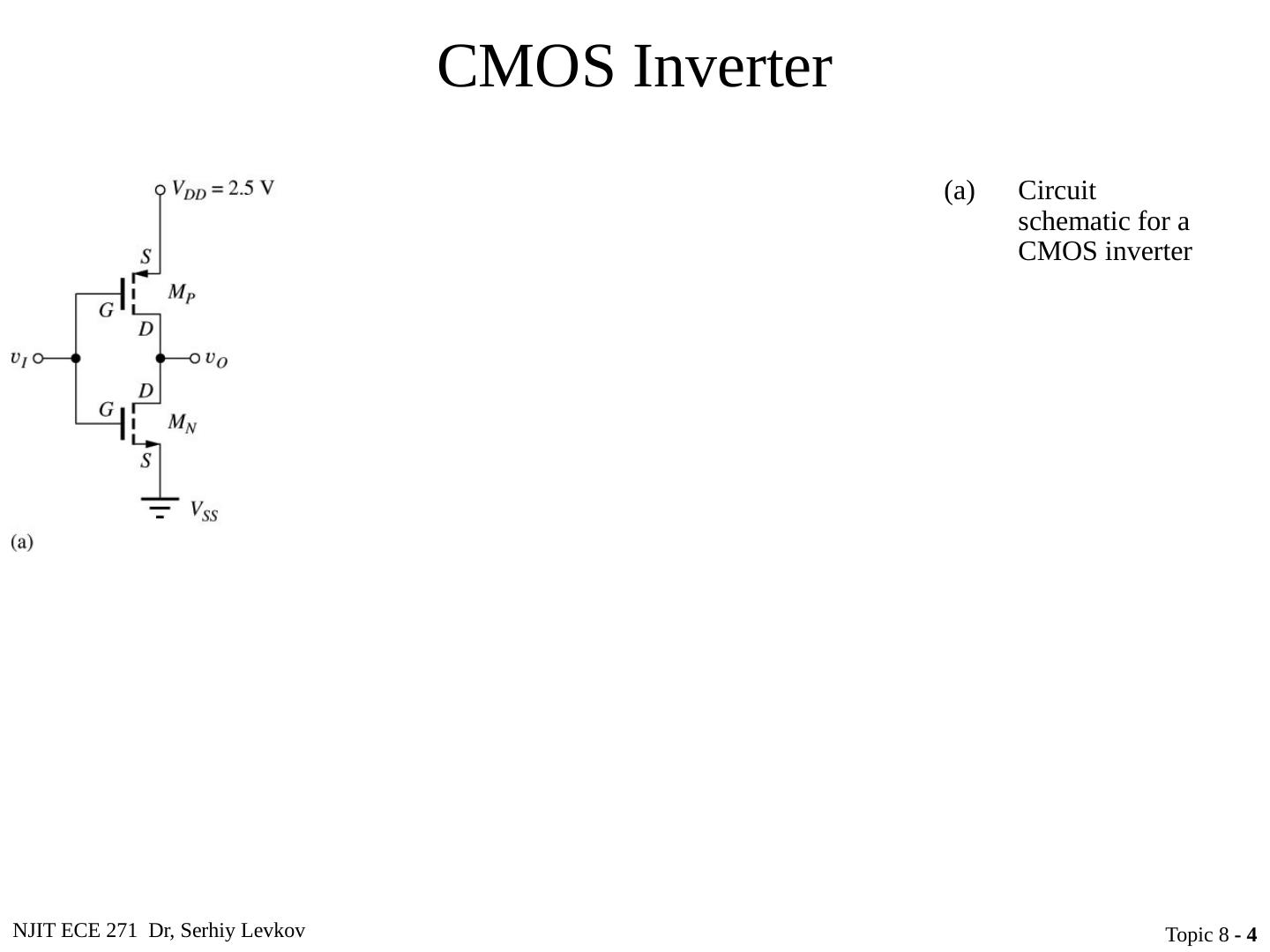 1 .NJIT ECE 271 Dr, Serhiy Levkov Topic 8 - 1 Topic 8 Complementary MOS (CMOS) Logic Design ECE 271 Electronic Circuits I
