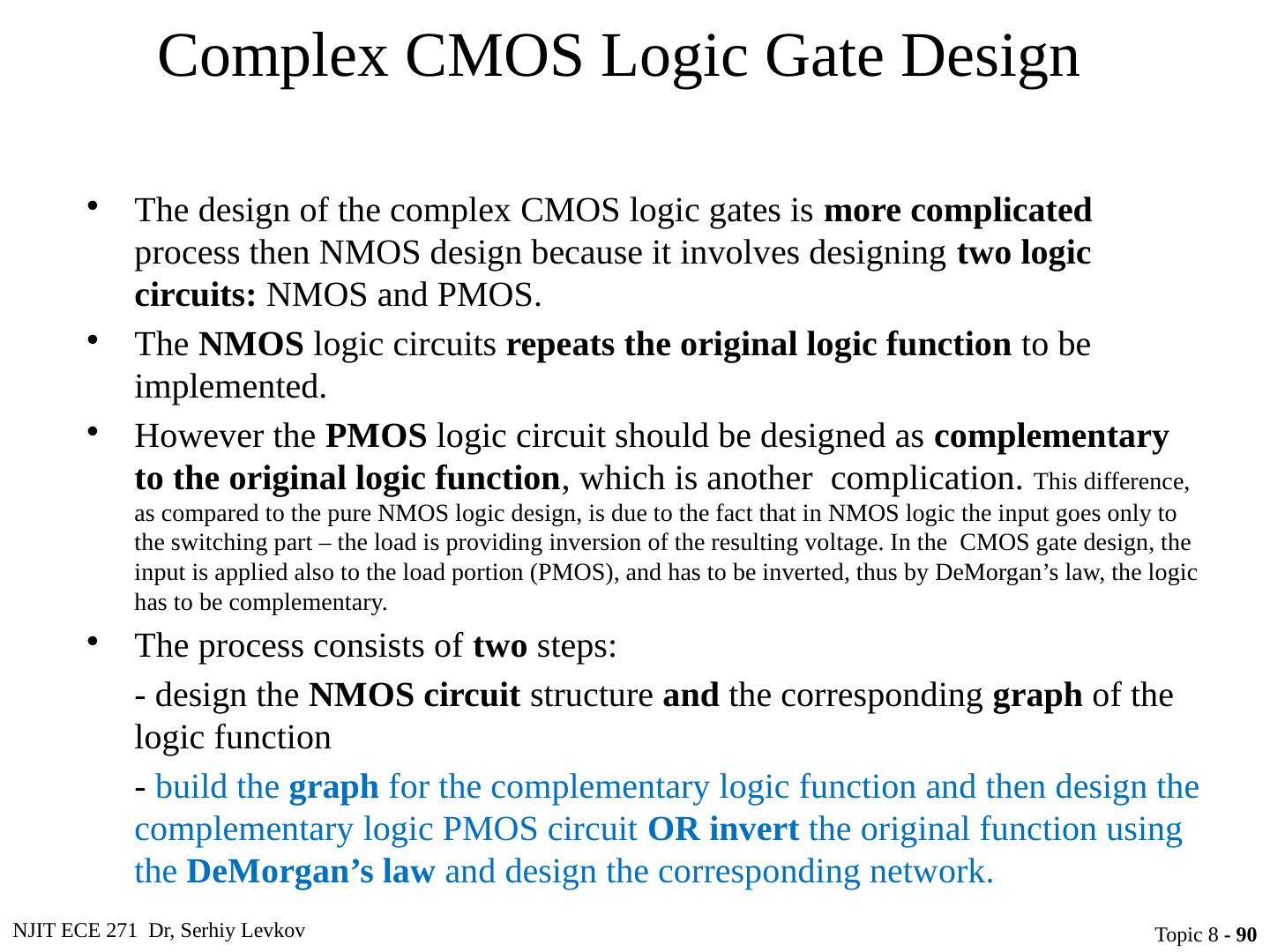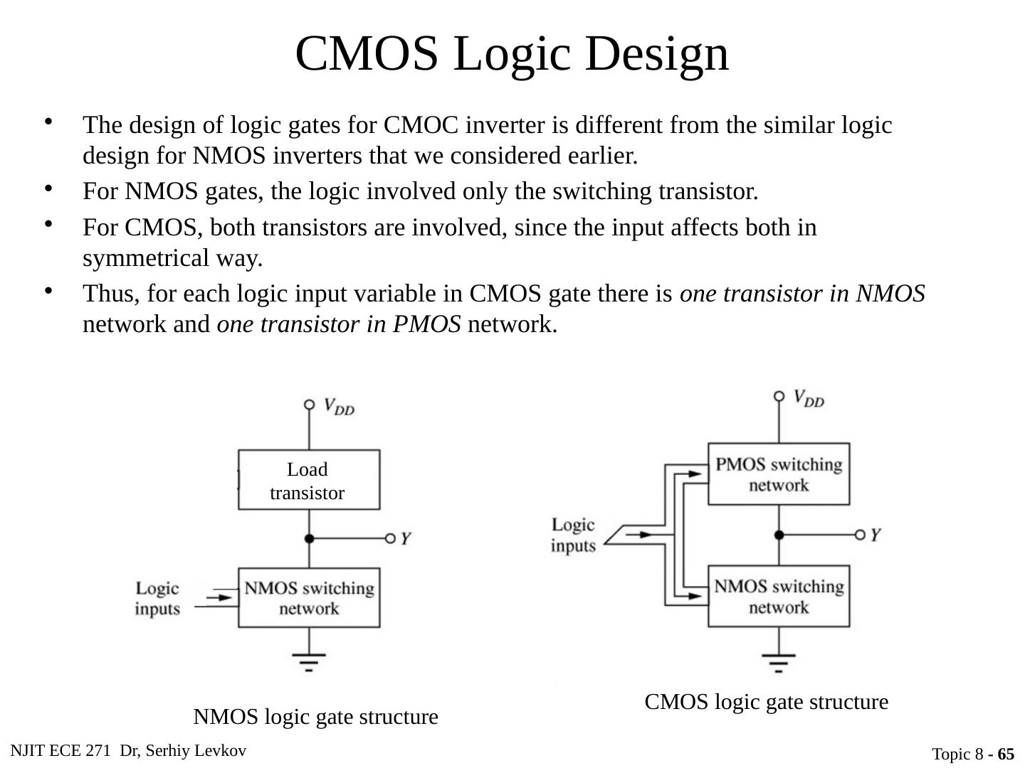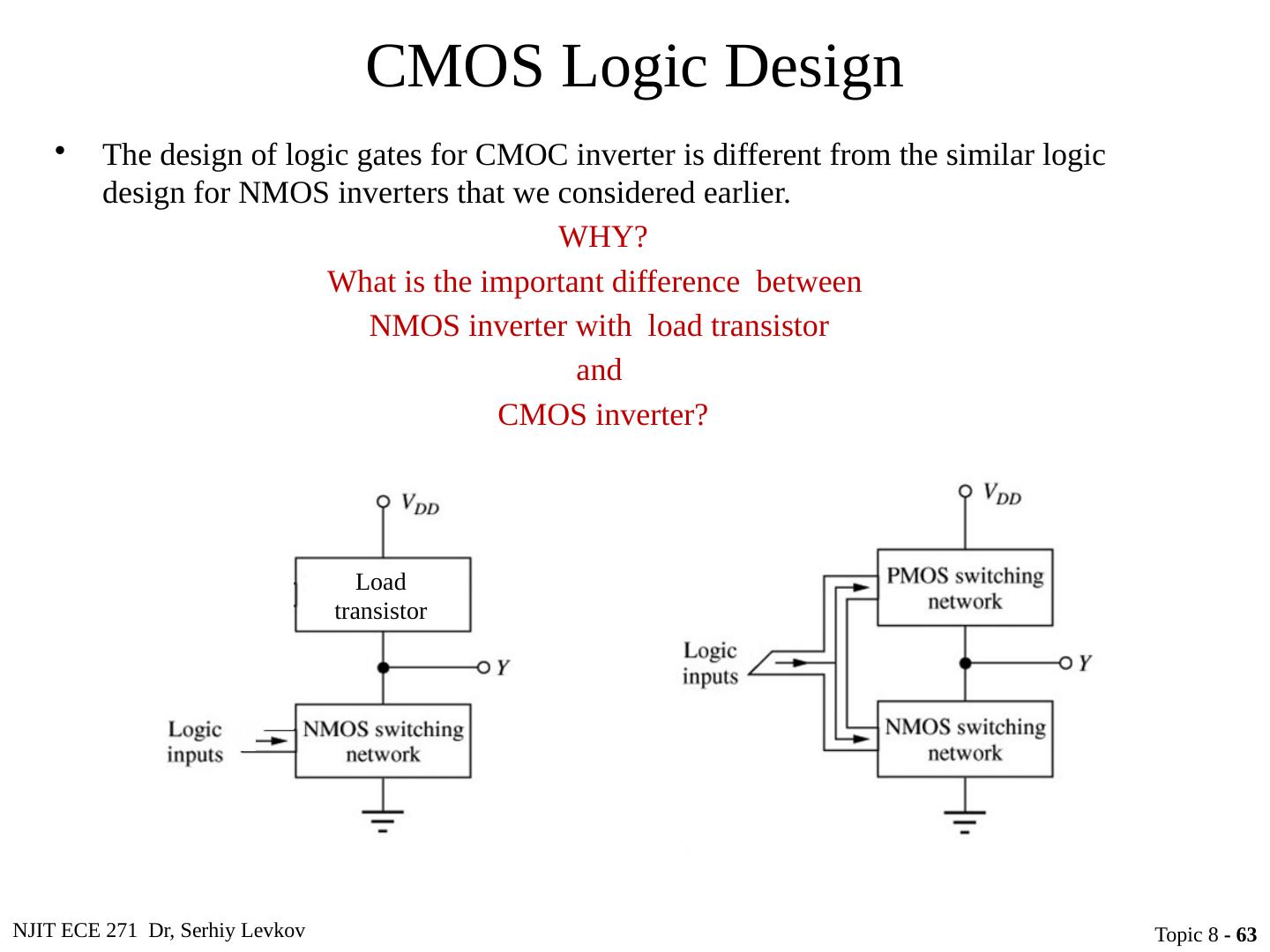 1 .NJIT ECE 271 Dr, Serhiy Levkov Topic 8 - 1 Topic 8 Complementary MOS (CMOS) Logic Design ECE 271 Electronic Circuits I