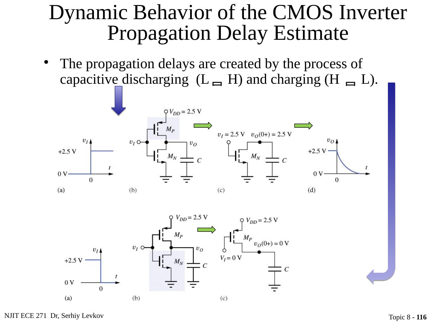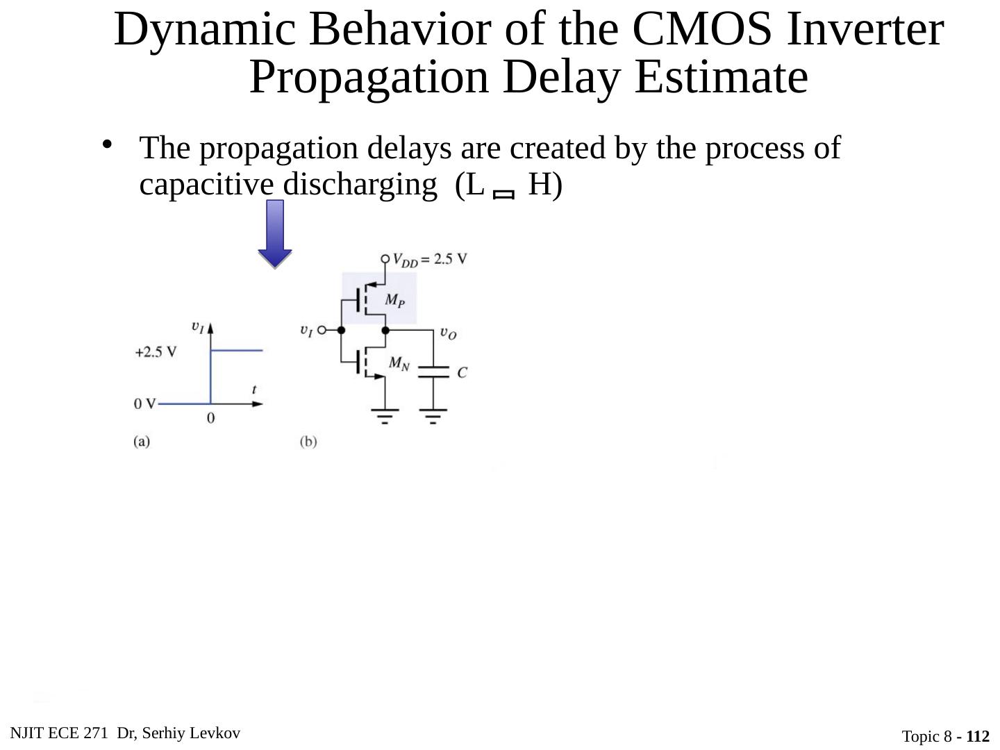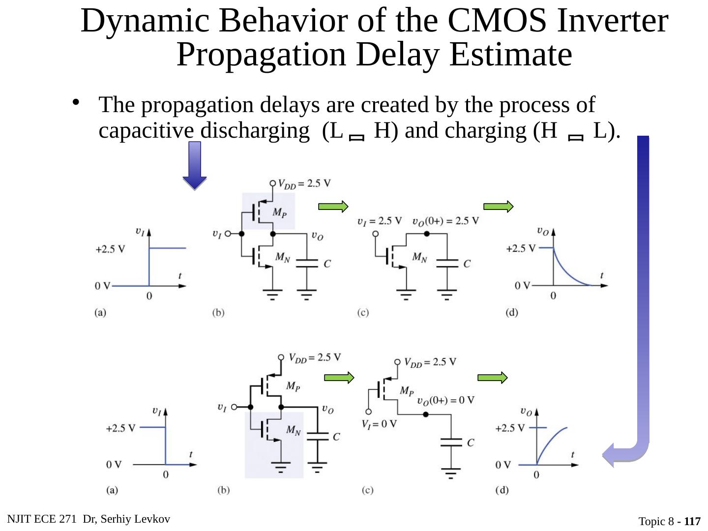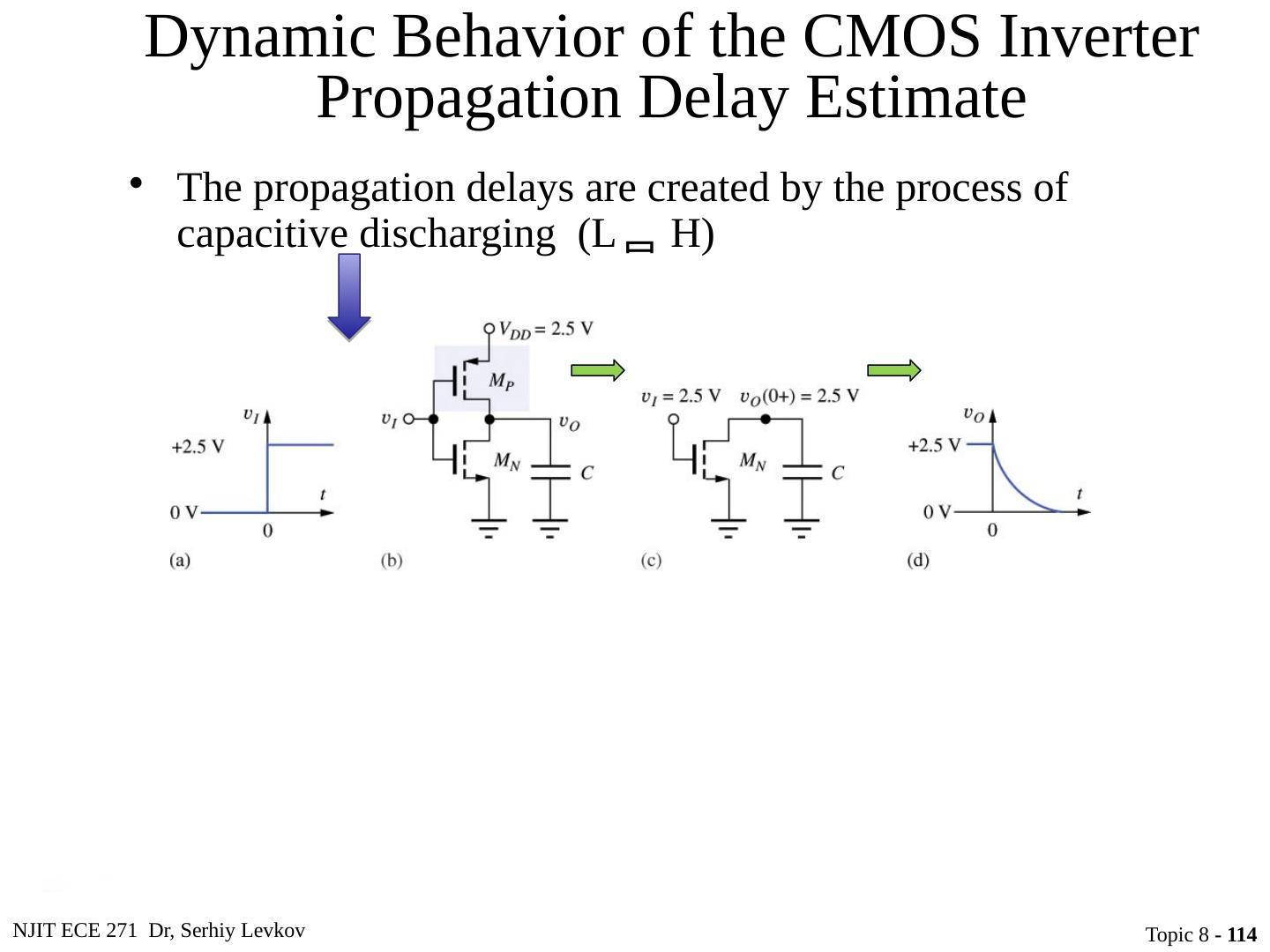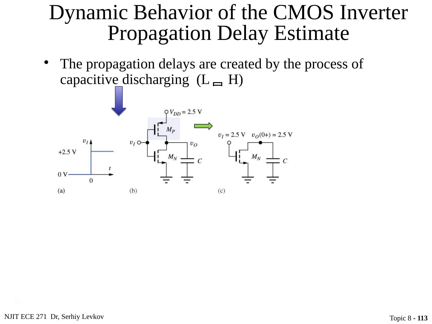 23 .NJIT ECE 271 Dr, Serhiy Levkov Topic 8 - 23 Static States of the CMOS Inverter The capacitor discharges through R onN , current exists only during discharge, no dc current exists.