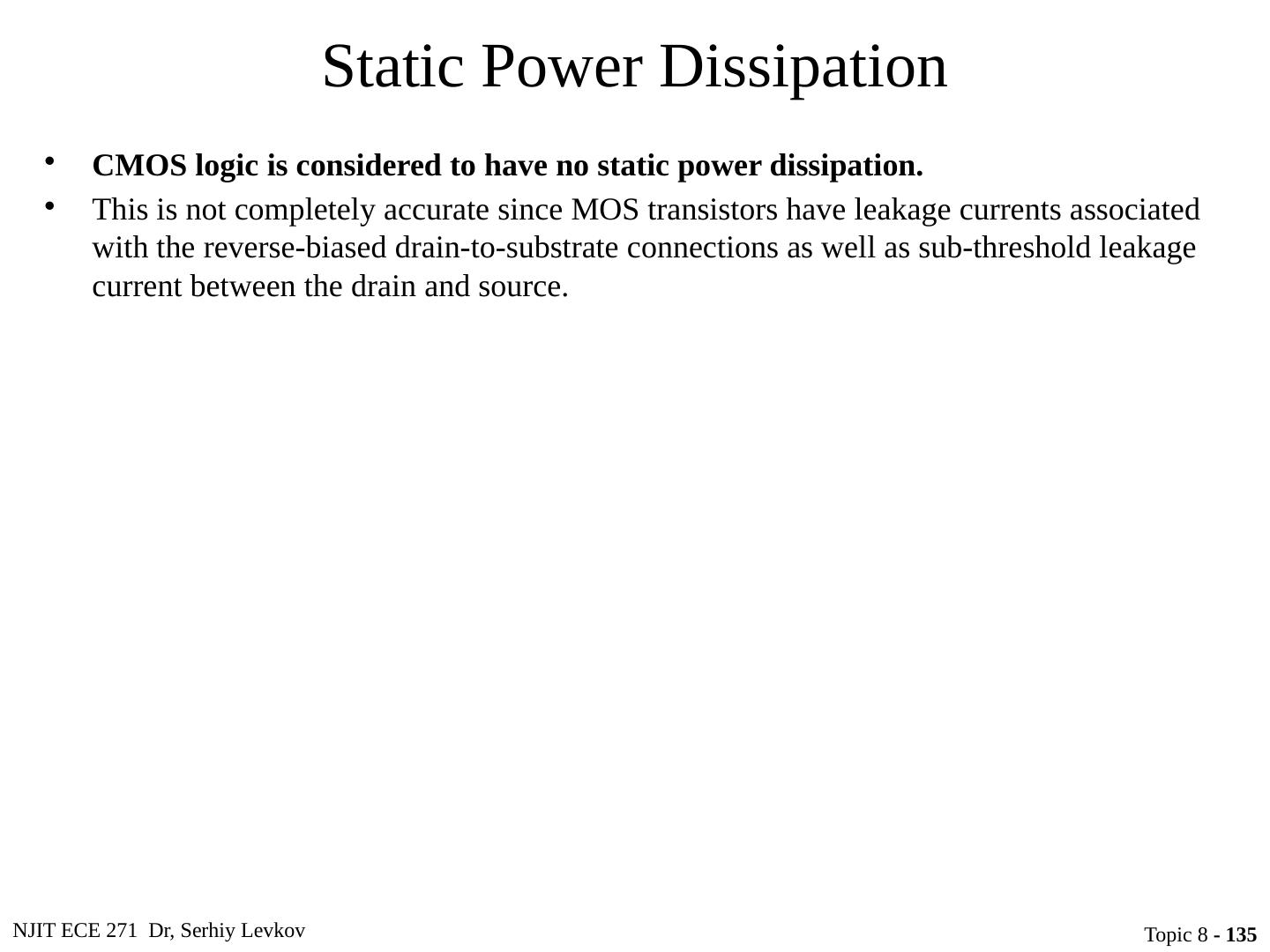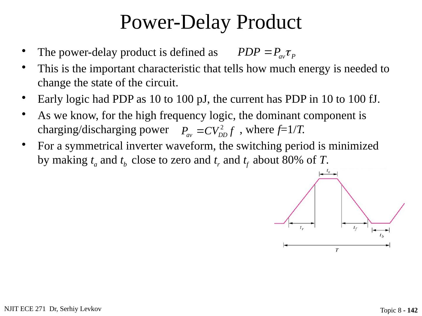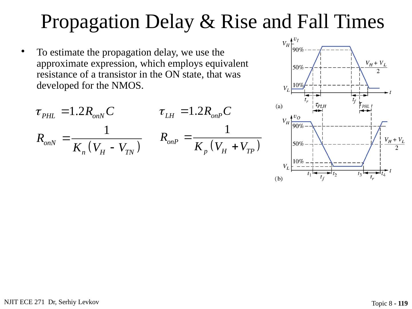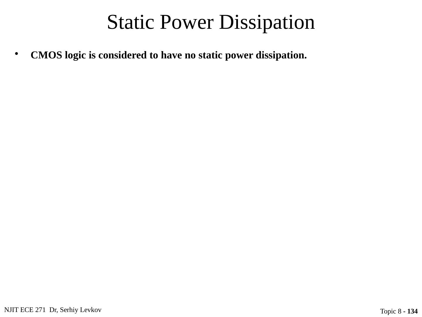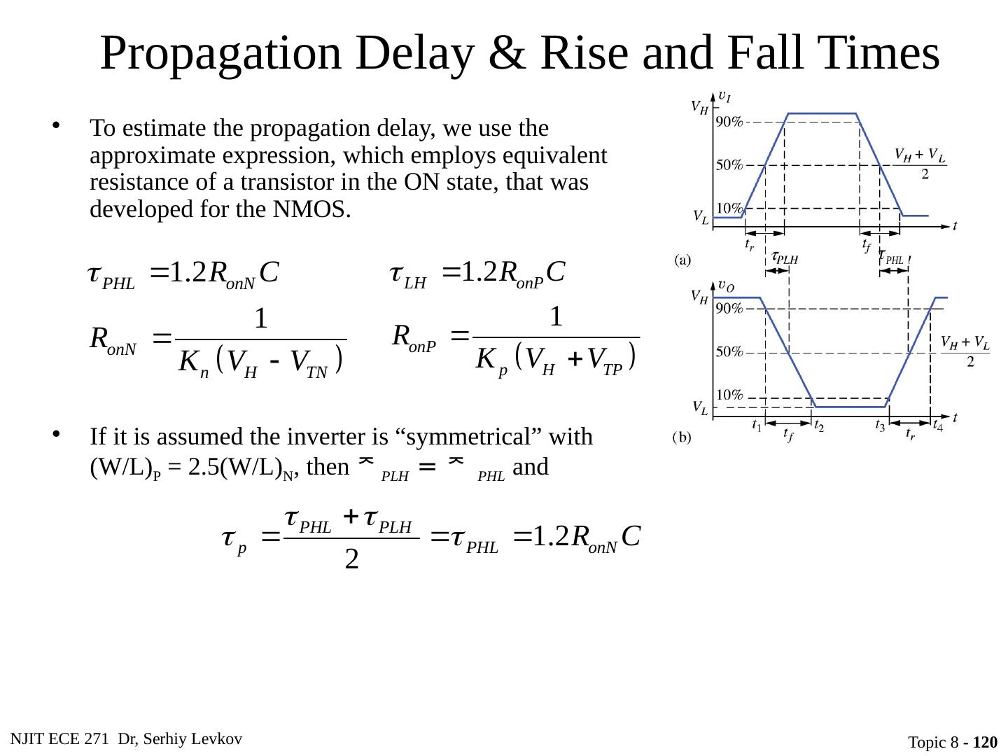 23 .NJIT ECE 271 Dr, Serhiy Levkov Topic 8 - 23 Static States of the CMOS Inverter The capacitor discharges through R onN , current exists only during discharge, no dc current exists.
