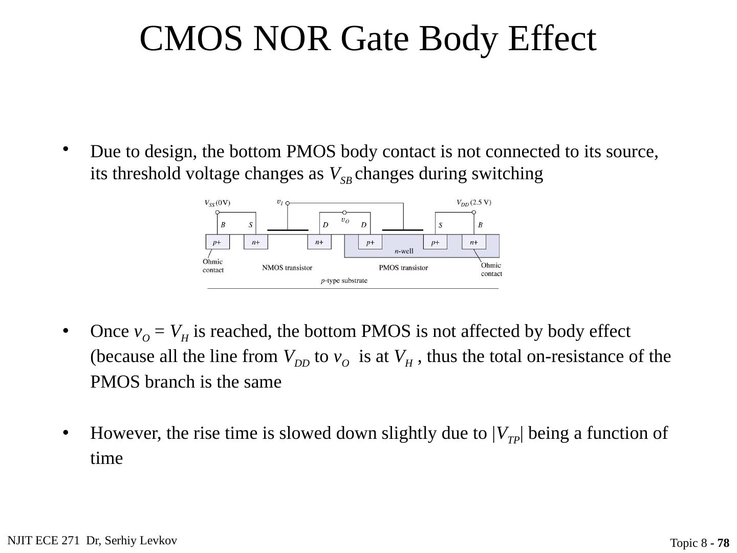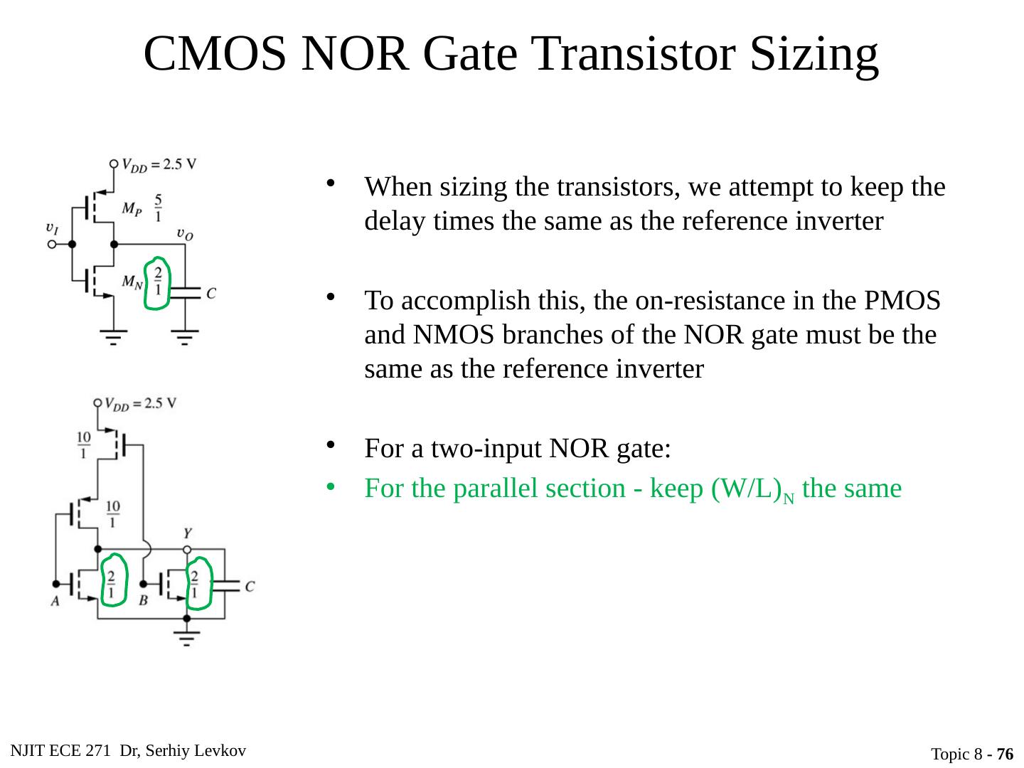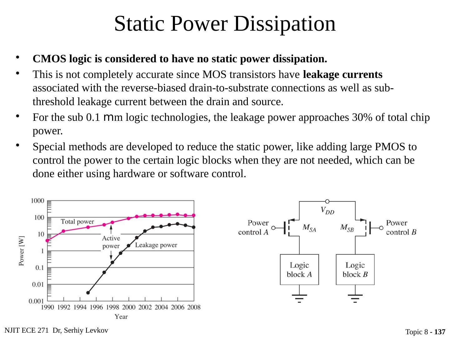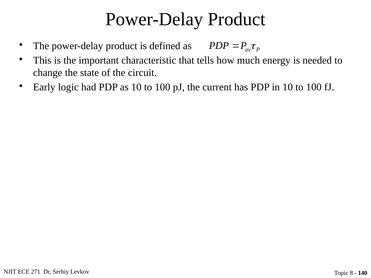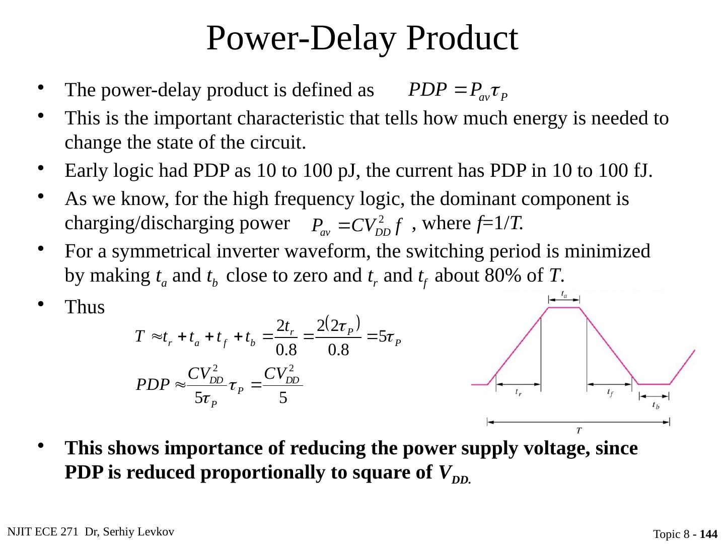 23 .NJIT ECE 271 Dr, Serhiy Levkov Topic 8 - 23 Static States of the CMOS Inverter The capacitor discharges through R onN , current exists only during discharge, no dc current exists.