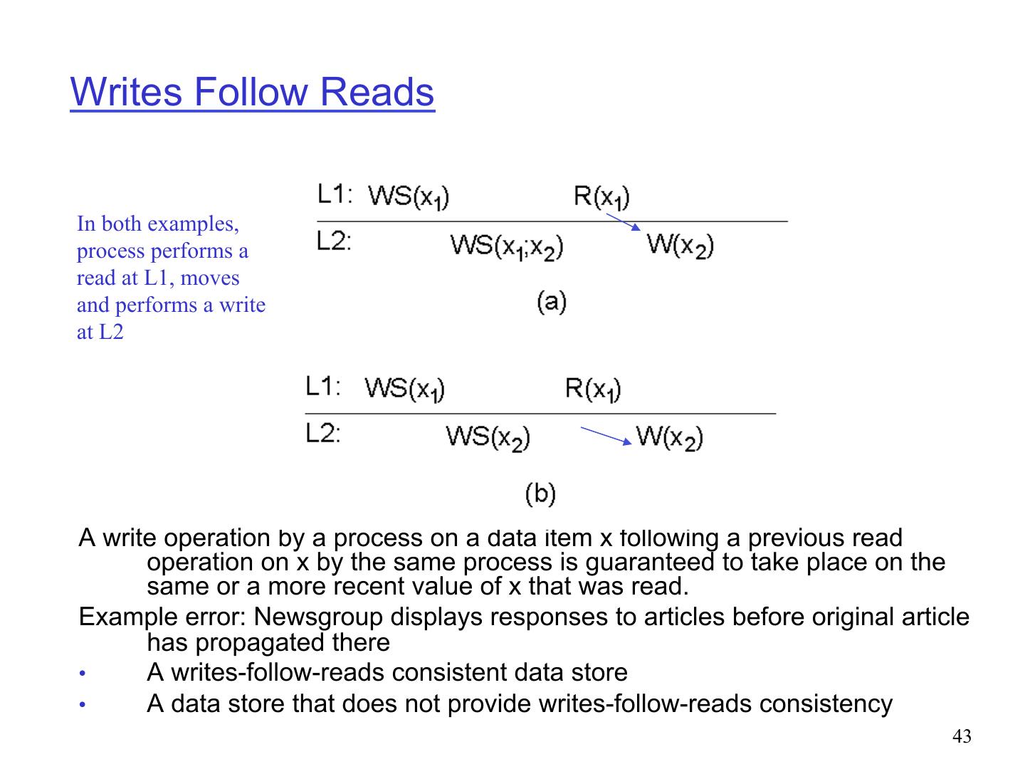 16 .Strict consistency q Each operation is stamped with a global wall- clock time q Rules: 1. Each read gets the latest write value 2. All operations at one CPU have time-stamps in execution order