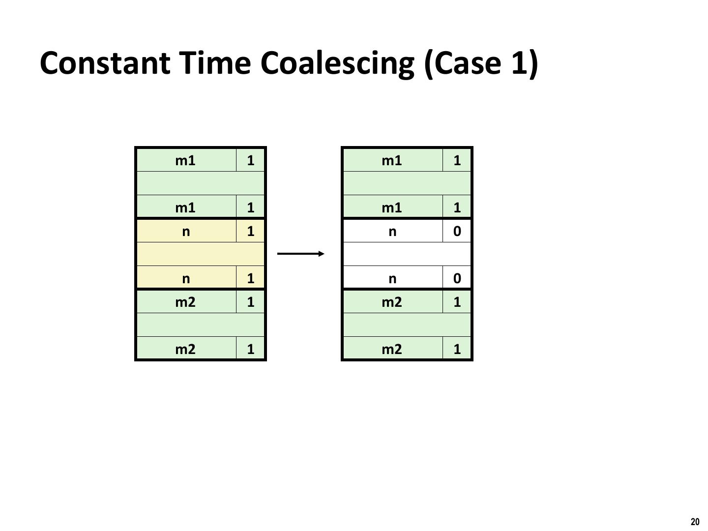 20 . Binghamton University Constant Time Coalescing (Case 1) m1 1 m1 1 m1 1 m1 1 n 1 n 0 n 1 n 0 m2 1 m2 1 m2 1 m2 1 20