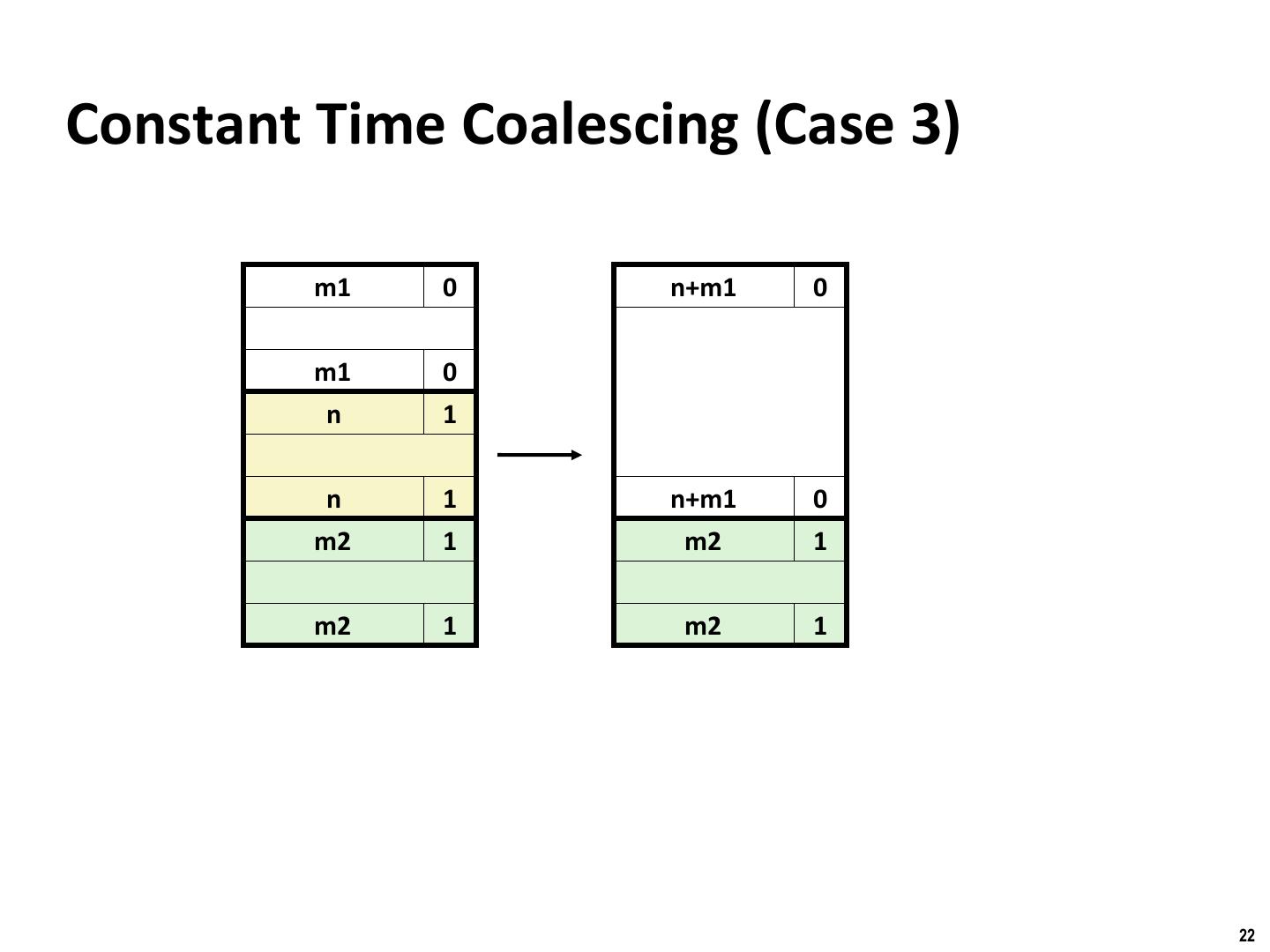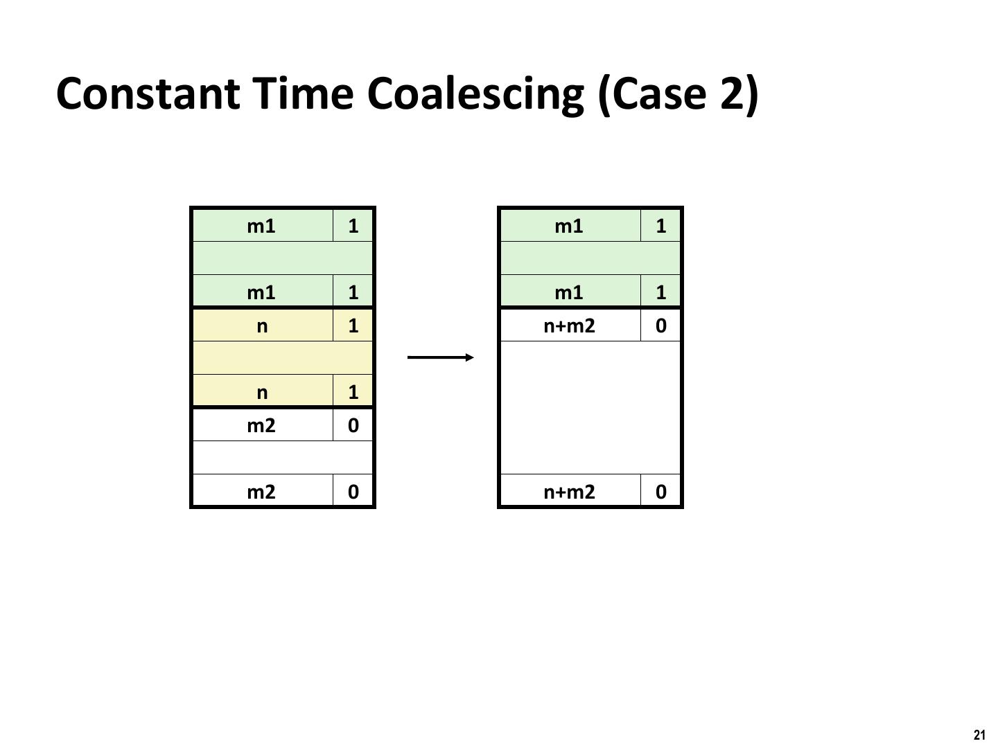21 . Binghamton University Constant Time Coalescing (Case 2) m1 1 m1 1 m1 1 m1 1 n 1 n+m2 0 n 1 m2 0 m2 0 n+m2 0 21