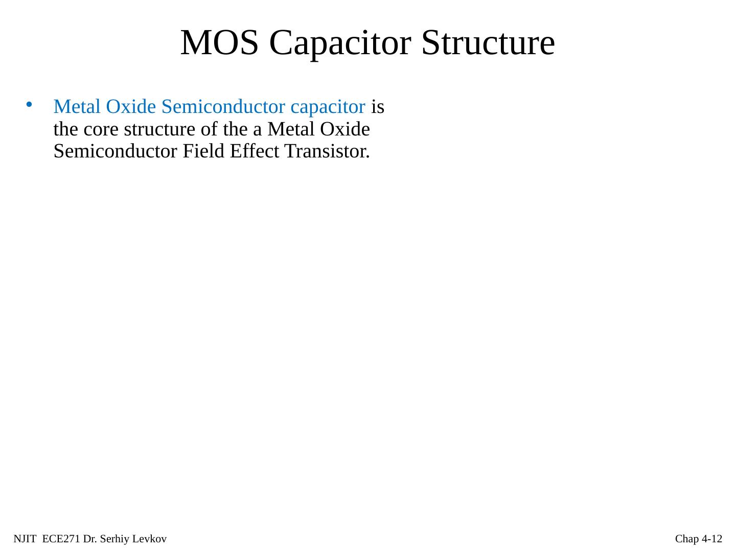 12 .NJIT ECE271 Dr. Serhiy Levkov Chap 4- 12 MOS Capacitor Structure Metal Oxide Semiconductor capacitor is the core structure of the a Metal Oxide Semiconductor Field Effect Transistor.