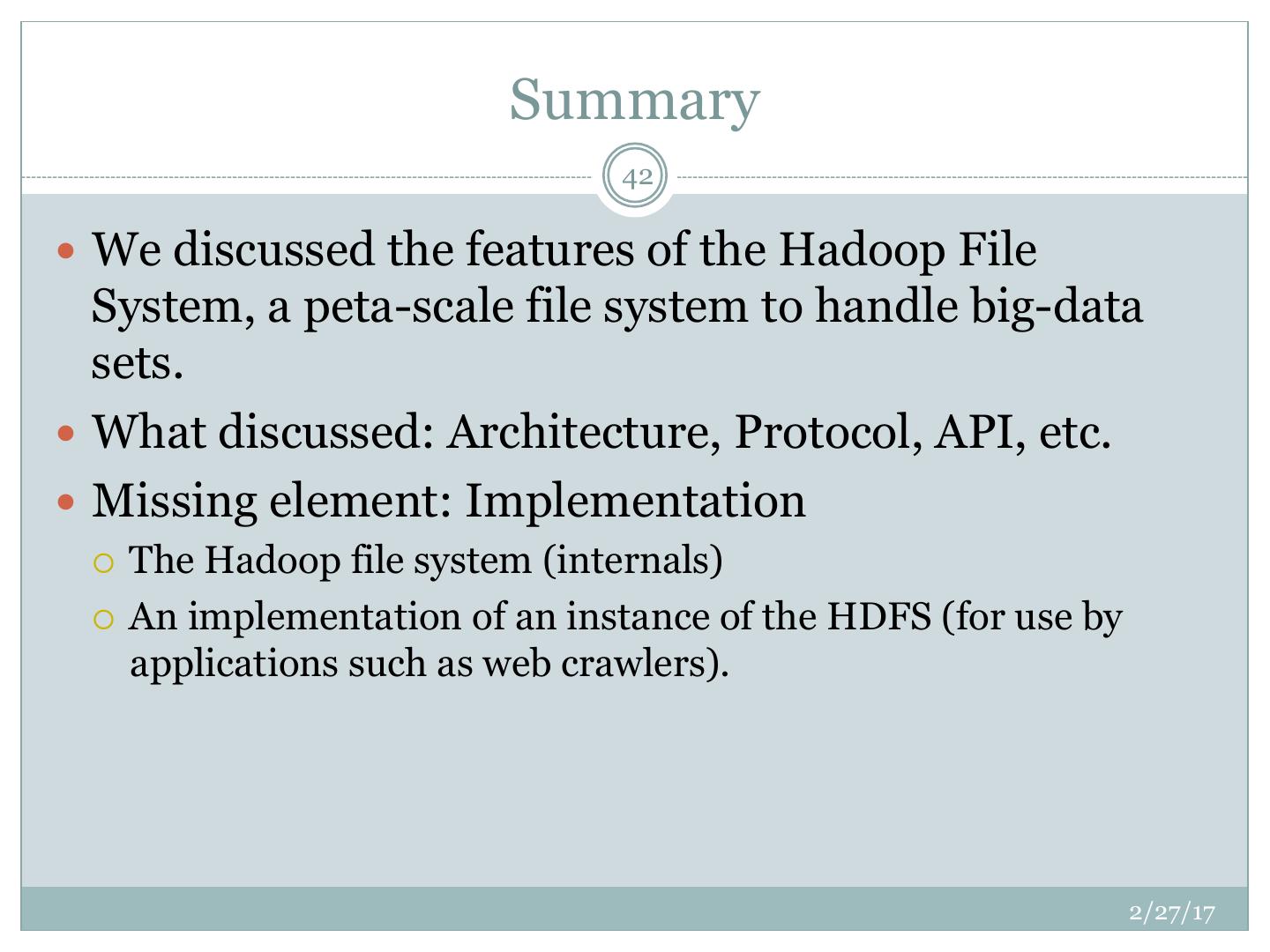 1 . Hadoop File System 1 SLIDES MODIFIED FROM PRESENTATION BY B. RAMAMURTHY 2/27/17