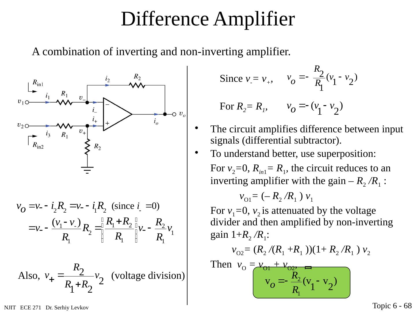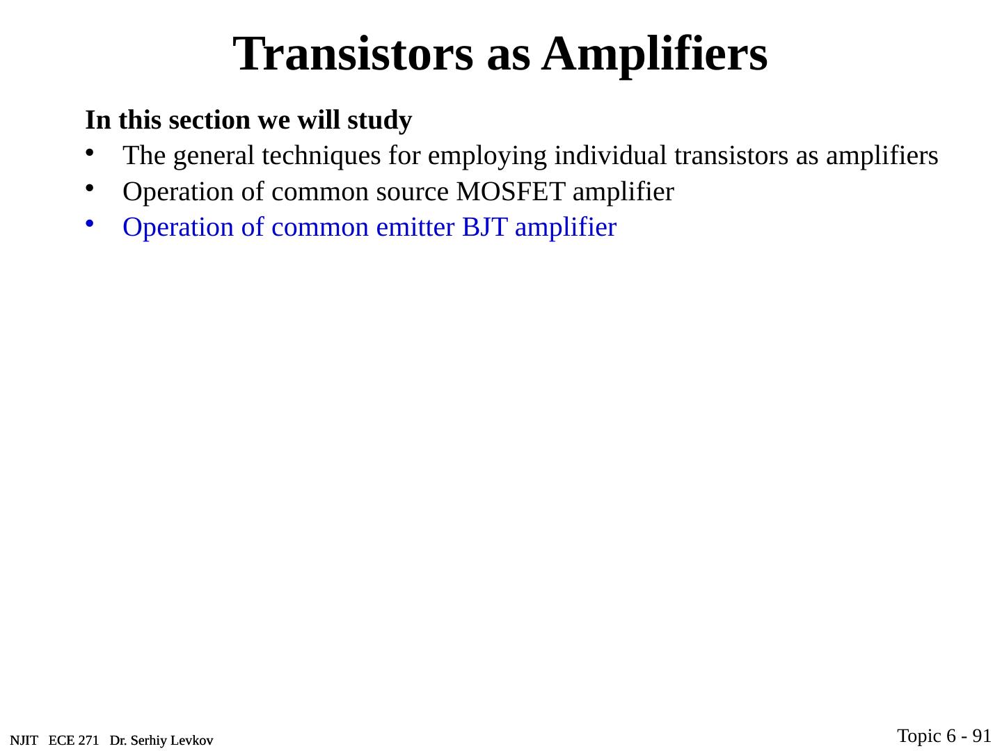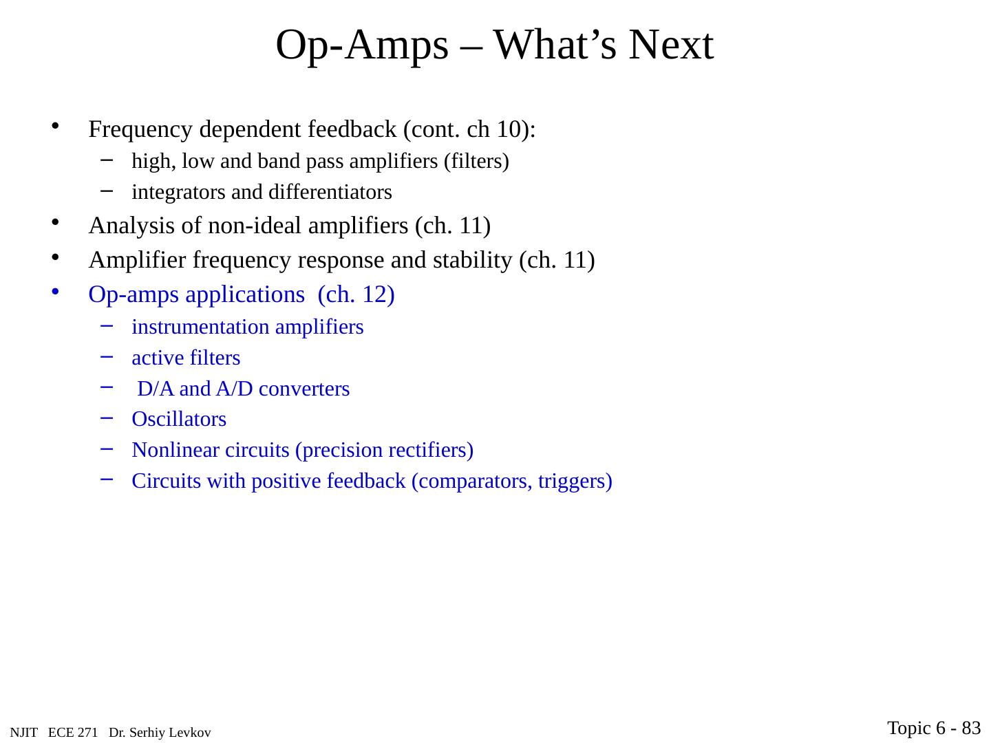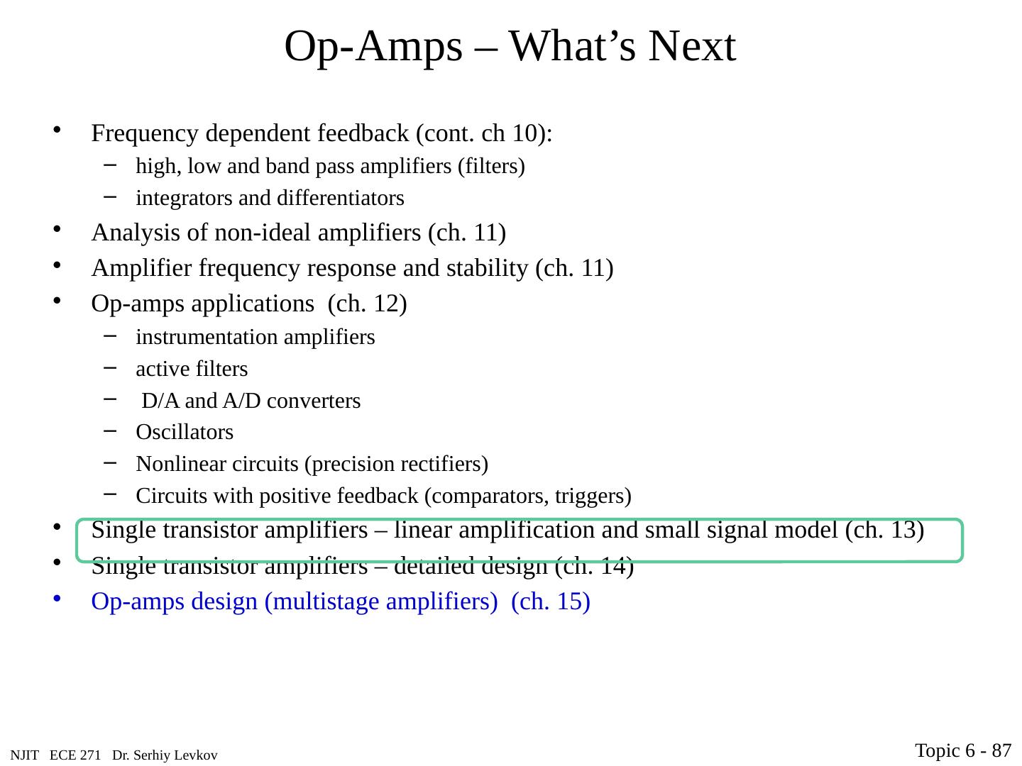 1 .NJIT ECE 271 Dr. Serhiy Levkov Topic 6 - 1 Topic 6 Analog Circuits Ideal Operational Amplifiers One Transistor Amplifier ECE 271 Electronic Circuits I