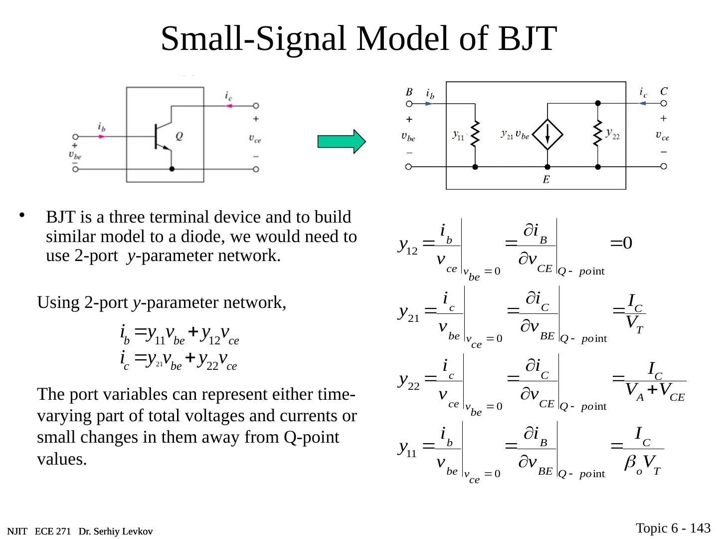 12 .NJIT ECE 271 Dr. Serhiy Levkov g -parameters Use open-circuit ( i = 0) and short-circuit ( v = 0) terminal conditions Open-circuit input conductance Reverse short-circuit current gain Forward open-circuit voltage gain Short-circuit output resistance Topic 6 - 12