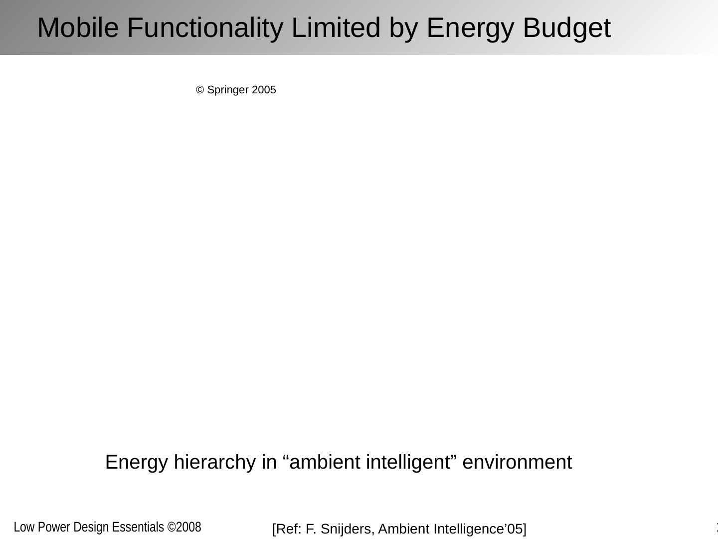 8 .Mobile Functionality Limited by Energy Budget [Ref: F. Snijders , Ambient Intelligence’05] Energy hierarchy in “ambient intelligent” environment © Springer 2005