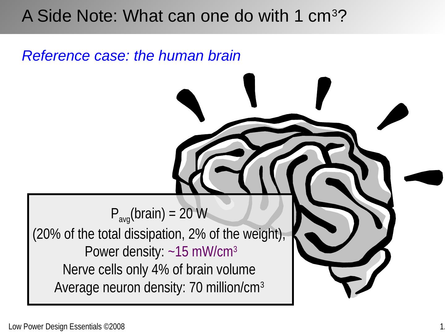 20 .A Side Note: What can one do with 1 cm 3 ? Reference case: the human brain P avg (brain) = 20 W (20% of the total dissipation, 2% of the weight), Power density: ~15 mW/cm 3 Nerve cells only 4% of brain volume Average neuron density: 70 million/cm 3