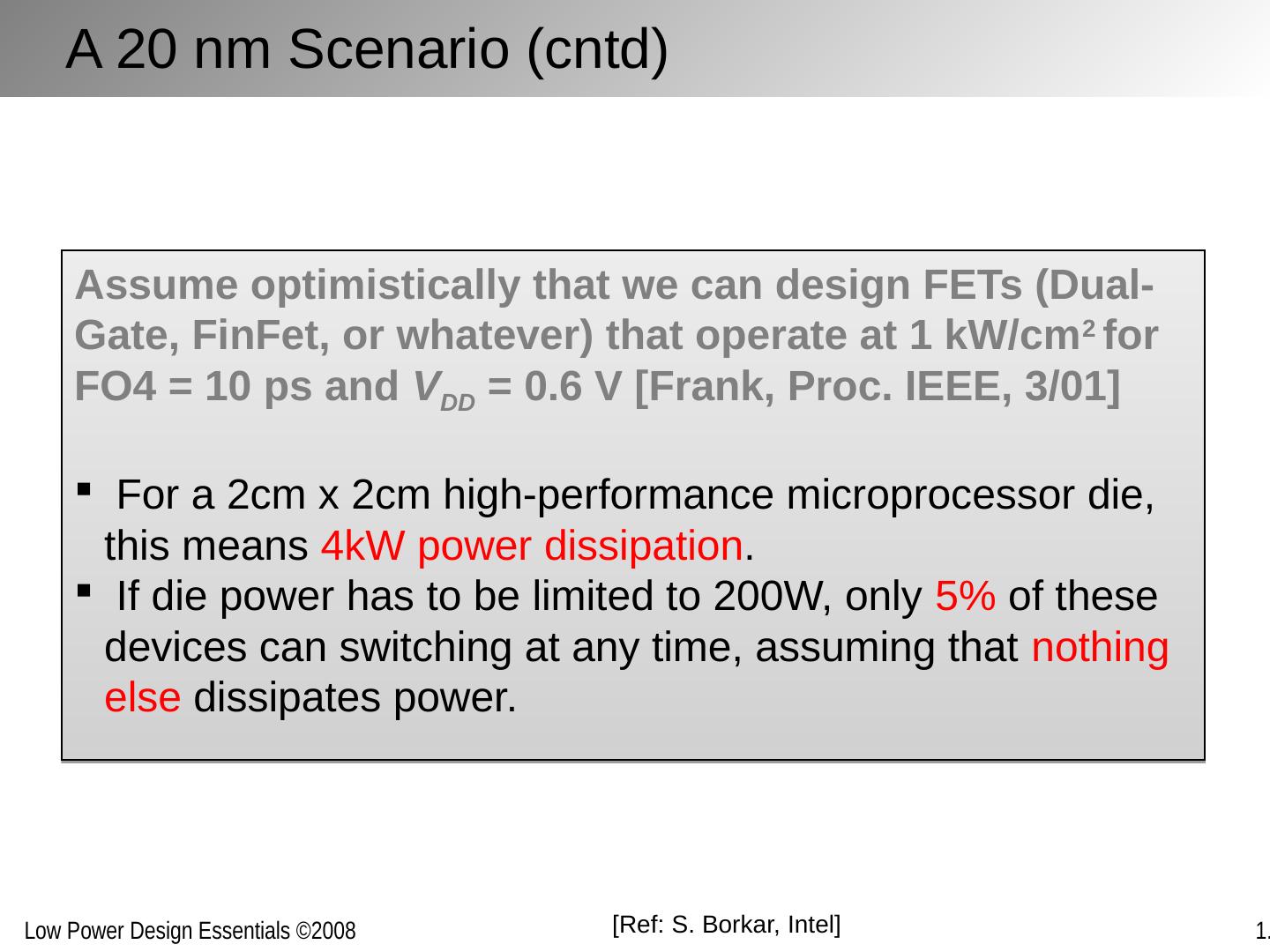 29 .Projecting Into the Future 2003 ITRS – Low operating power scenario Active power density: k 1.9 Leakage power density: k 2.7 Compute density: k 3 2005 ITRS – Low operating power scenario FD-SOI Dual Gate Power density (active and static) accelerating anew. Technology innovations help, but impact limited.