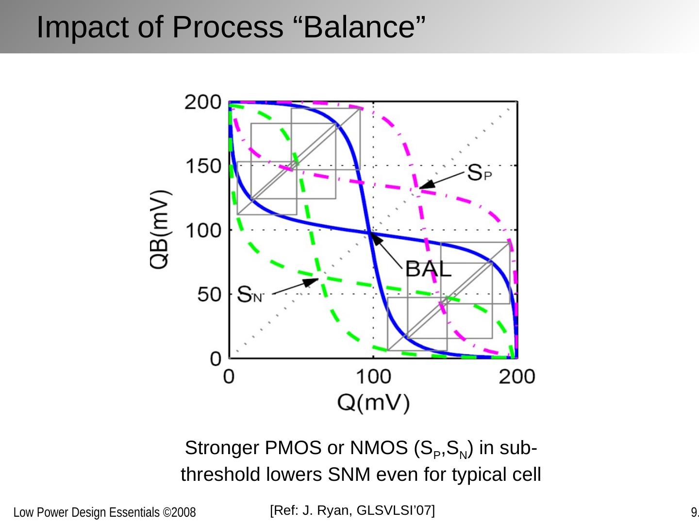 10 .Impact of Process “Balance” Stronger PMOS or NMOS (S P ,S N ) in sub-threshold lowers SNM even for typical cell [Ref: J. Ryan, GLSVLSI’07]
