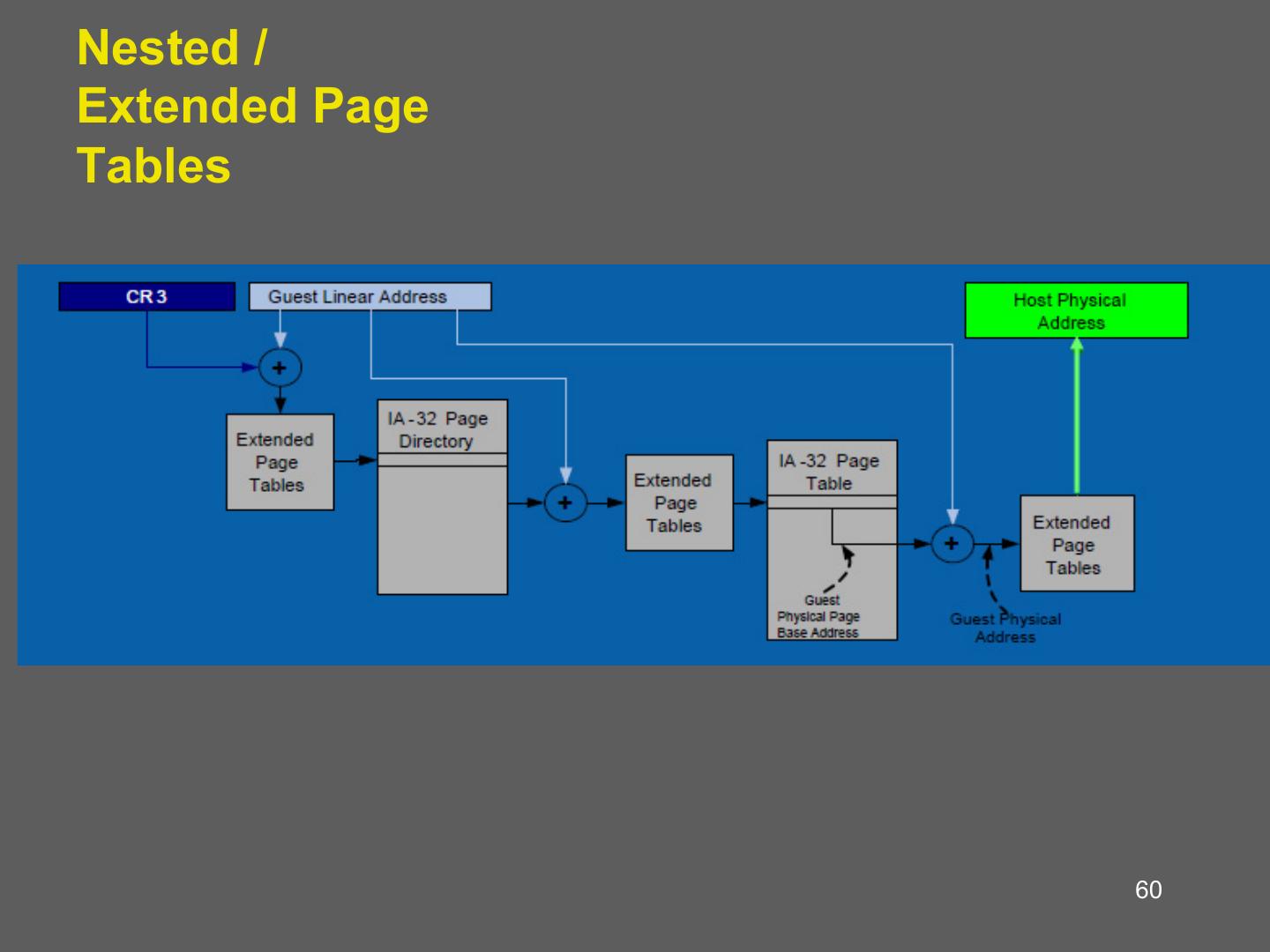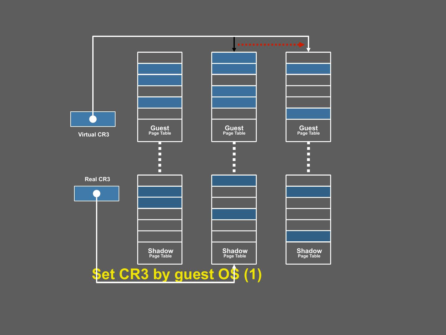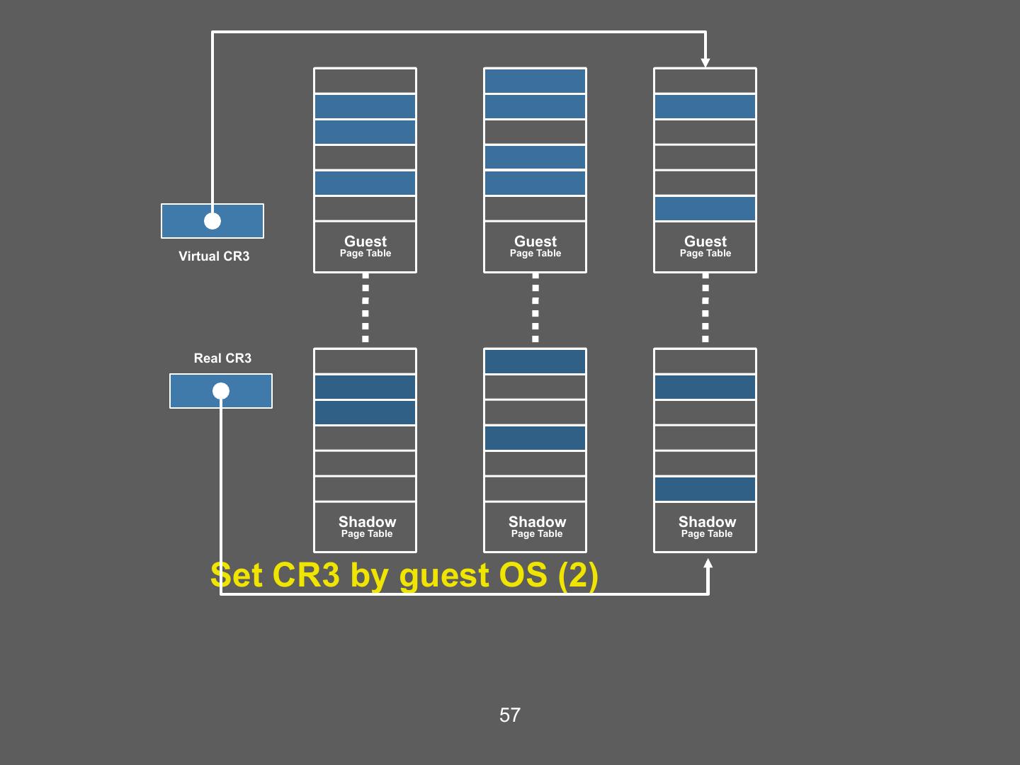 24 . Building Shadow Tables • Problem: how can the VMM maintain consistent shadow pages tables? – The guest OS may modify its page tables at any time – Modifying the tables is a simple memory write, not a privileged instruction • Thus, no helpful CPU exceptions :( • Solution: mark the hardware pages containing the guest’s tables as read-only – If the guest updates a table, an exception is generated – VMM catches the exception, examines the faulting write, updates the shadow table 24