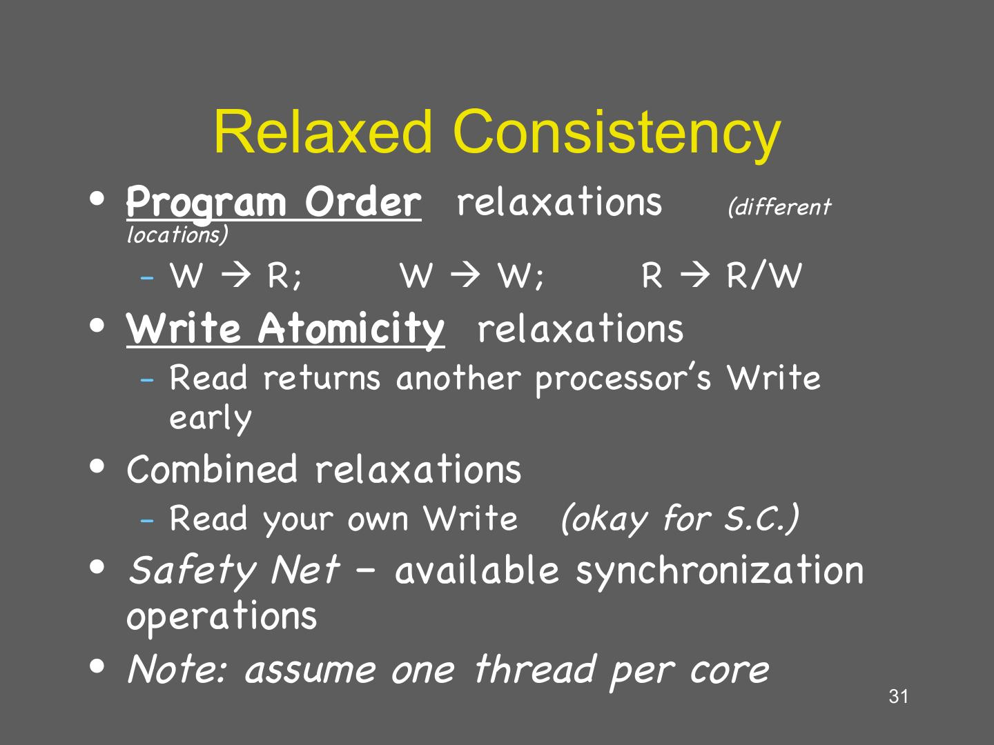 23 . Uniprocessor Systems • Memory operations occur: – One at a time – In program order • Read returns value of last write – Only matters if location is the same or dependent – Many possible optimizations • Intuitive! 23