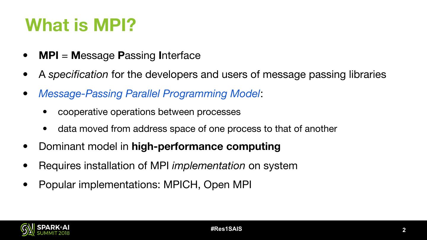 1 .An Apache Spark ⇔ MPI Interface Kai Rothauge, Alex Gittens, Michael W. Mahoney Thanks to NERSC and Cray Inc. for help and support! #Res1SAIS