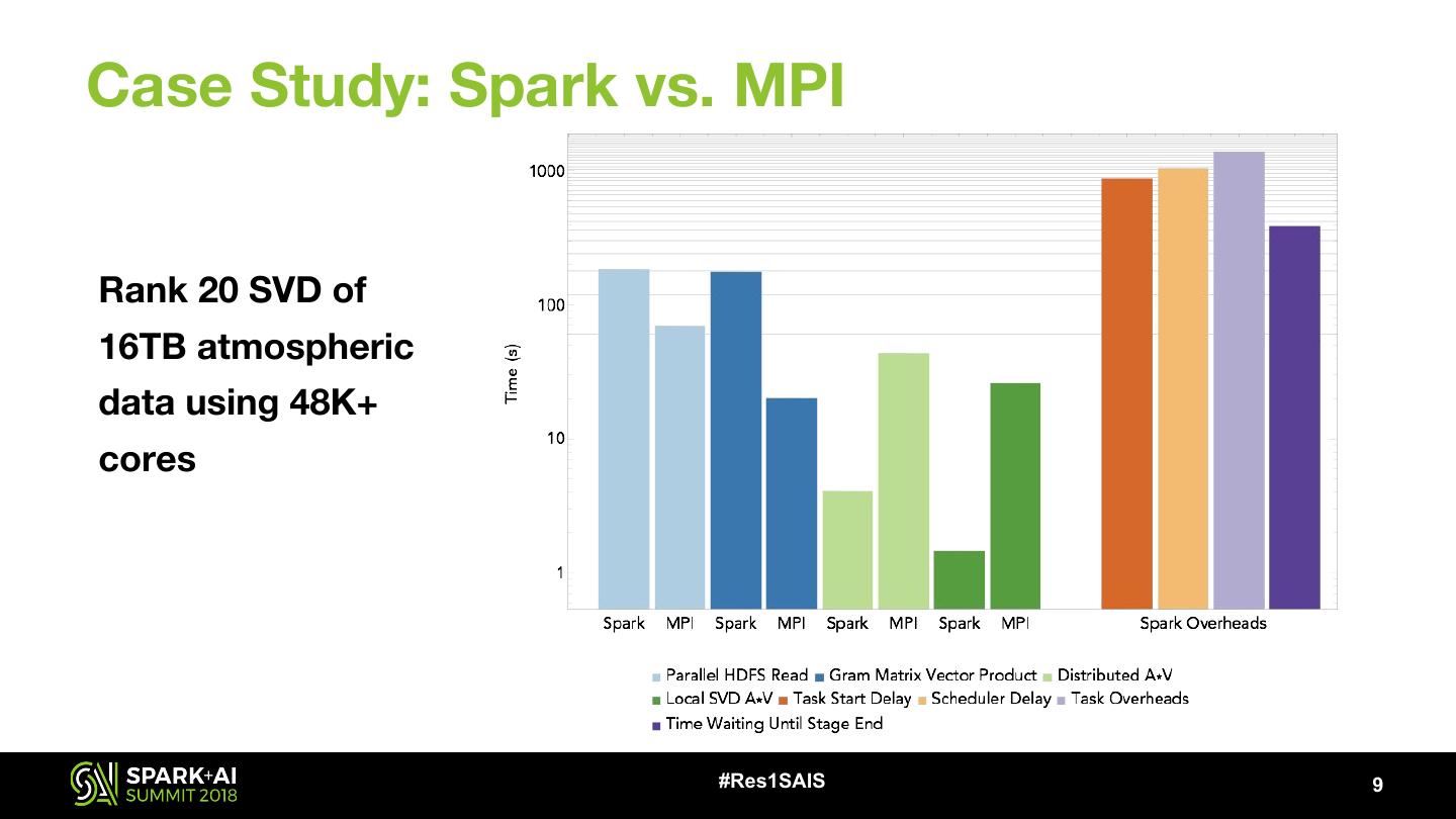 9 .Case Study: Spark vs. MPI Rank 20 SVD of 16TB atmospheric data using 48K+ cores #Res1SAIS 9