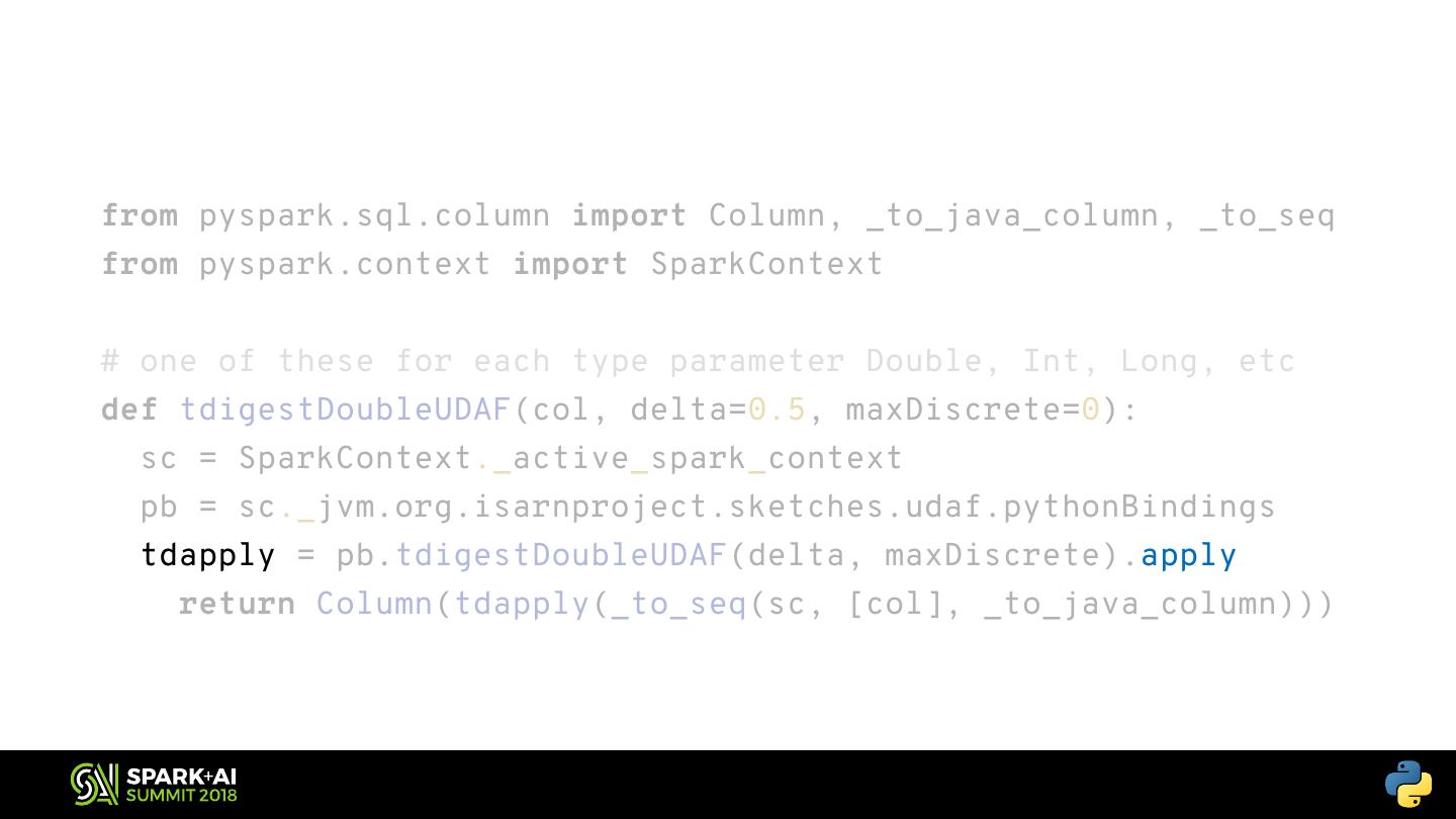 4 .Forecast Basic considerations for reusable Spark code Generic functions for parallel collections Extending data frames with custom aggregates Exposing JVM libraries to Python Sharing your work with the world
